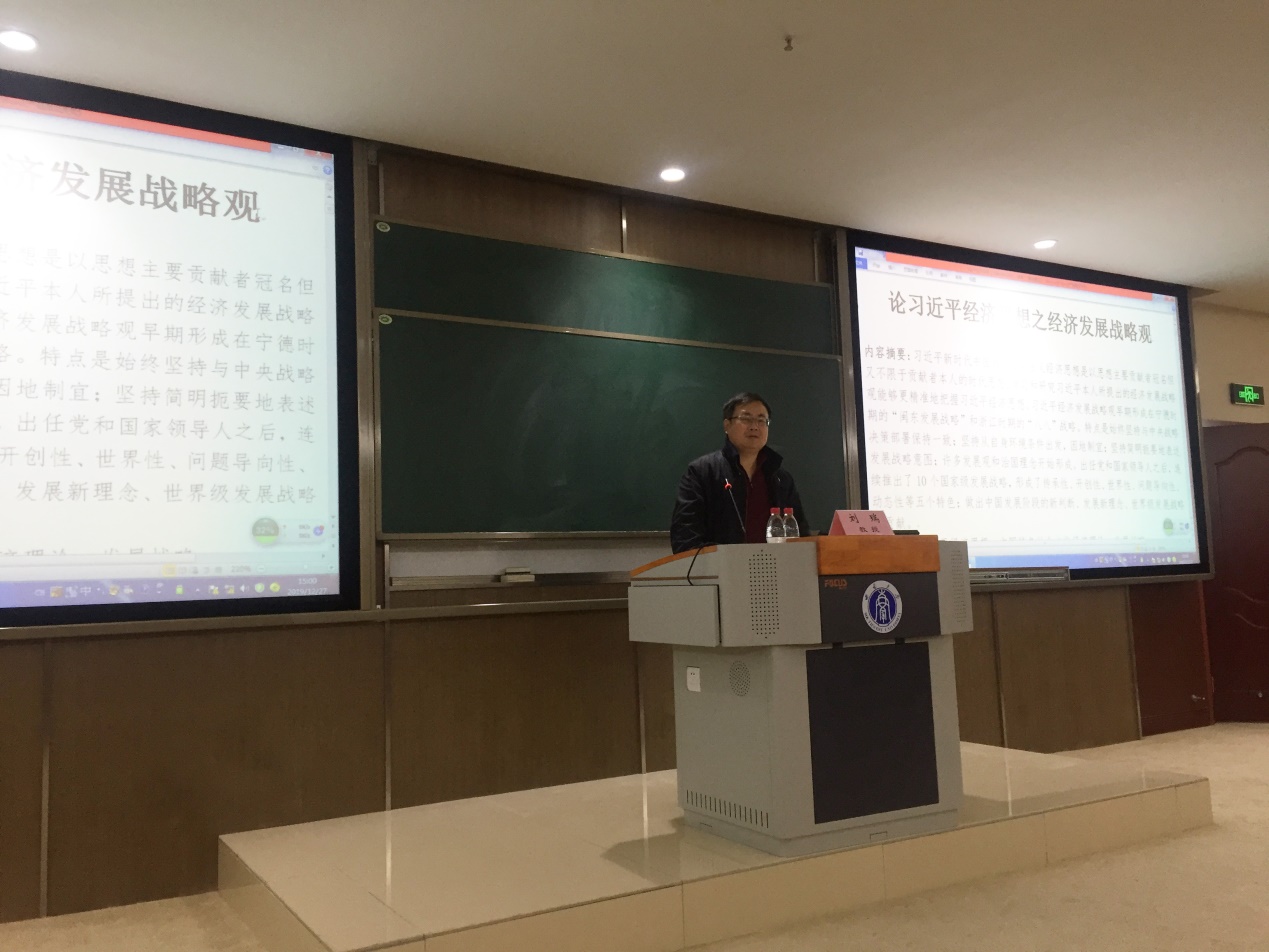 27日下午,刘瑞教授在B301报告厅作了题为“论习近平经济思想之经济发展战略观”的学术讲座。讲座由公司党委书记、经理祝志勇教授主持。公司师生100余人参加了讲座。