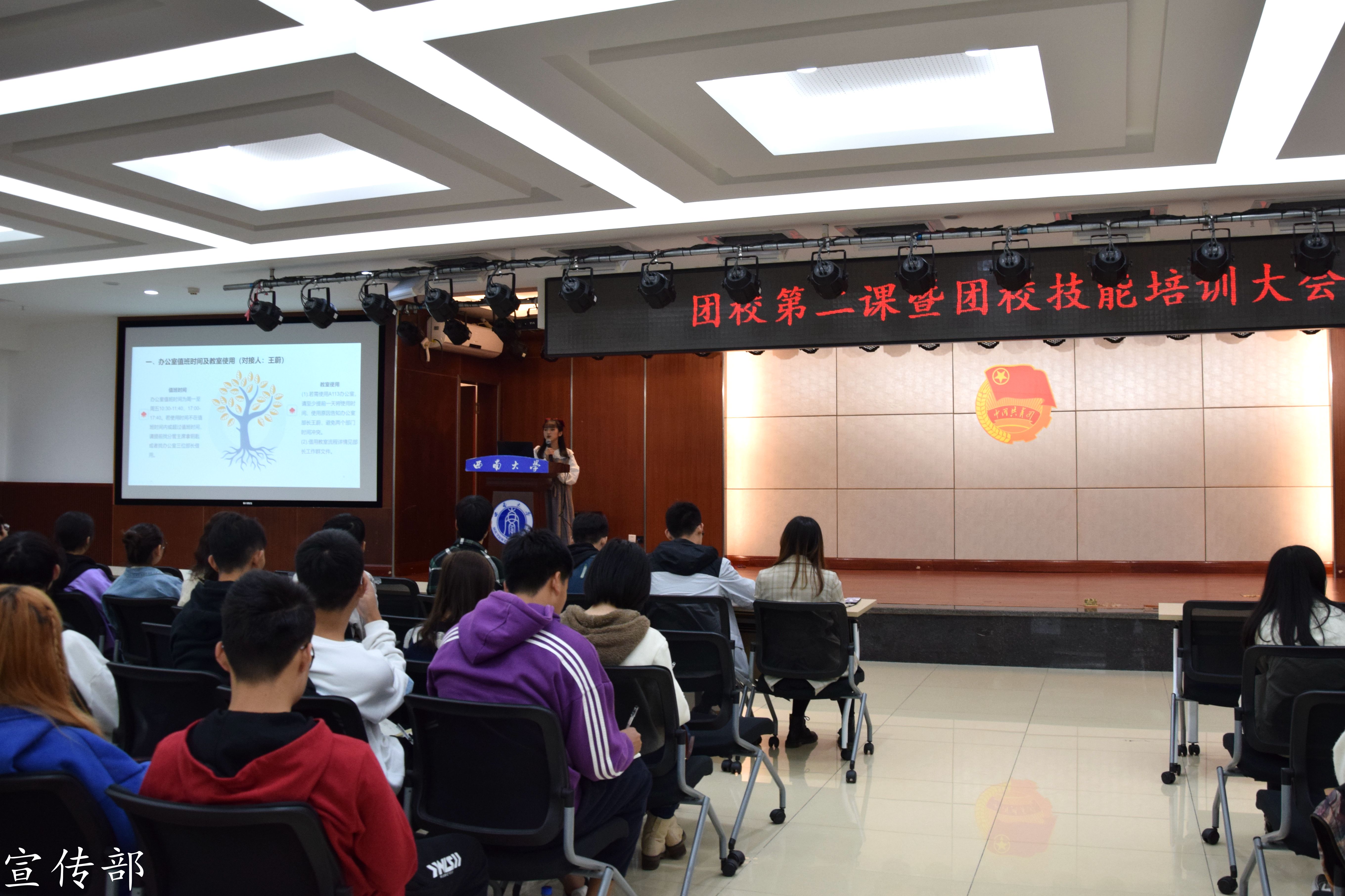 随后,各个部门代表分别介绍了所在部门的成员情况,本职工作与共性工作。各个部门有趣的介绍活跃了大会的气氛,也将大会推向了高潮。最后办公室着重讲解了通知、公示等公文的写作注意事项与格式,宣传部介绍了新闻稿件的写稿与发布流程。同学们认真聆听,拿出纸笔记录,纷纷表示在自己今后的工作中严格按照工作流程进行,加强部门沟通和合作。