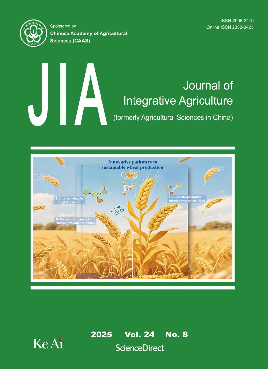 Journal of Integrative Agriculture (《农业科学学报》(英文), JIA) 由中华人民共和国农业农村部主管,中国农业科公司与中国农学会主办,中国农业科公司农业信息研究所承办。综合性英文学术期刊,月刊。创刊于2002年,现任主编为中国科公司院士陈化兰。JIA主要栏目有作物科学、园艺、植物保护、动物科学、动物医学、农业生态环境、食品科学、农业经济与管理等。刊稿类型有综述、研究论文、简报以及评述等。论文在Elsevier-ScienceDirect (SD) 平台OA出版。最新SCI影响因子4.4,位于SCI-JCR农业综合学科Q1区。中科院分区农林科学1区。2016年以来先后获得中国科协等部委 “提升计划”“登峰计划”“卓越计划”项目支持。