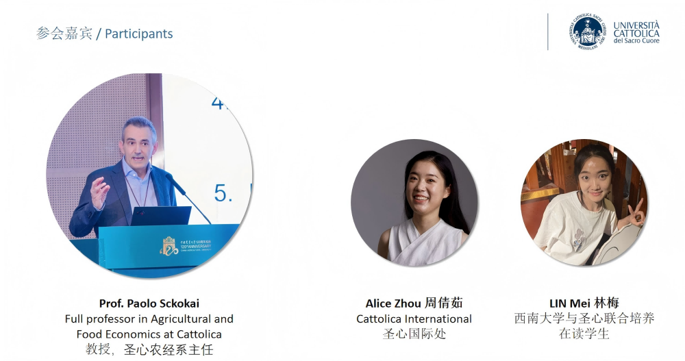 12月18日,在bv伟德国际1946与意大利圣心大学(Università Cattolica del Sacro Cuore)校级合作框架下,伟德国际VICTOR1946联合圣心大学成功举办农业食品经济“3+1+1”本硕联合培养项目线上宣讲会。圣心大学农业经济系主任、欧洲农业经济学家协会(EAAE)主席 Paolo Sckokai 教授,圣心大学国际处周倩茹女士,伟德国际VICTOR1946经理杨丹教授、专业建设办公室孔立主任、联合培养项目在读员工代表林梅同学及bv伟德国际1946师生共同在线参与。