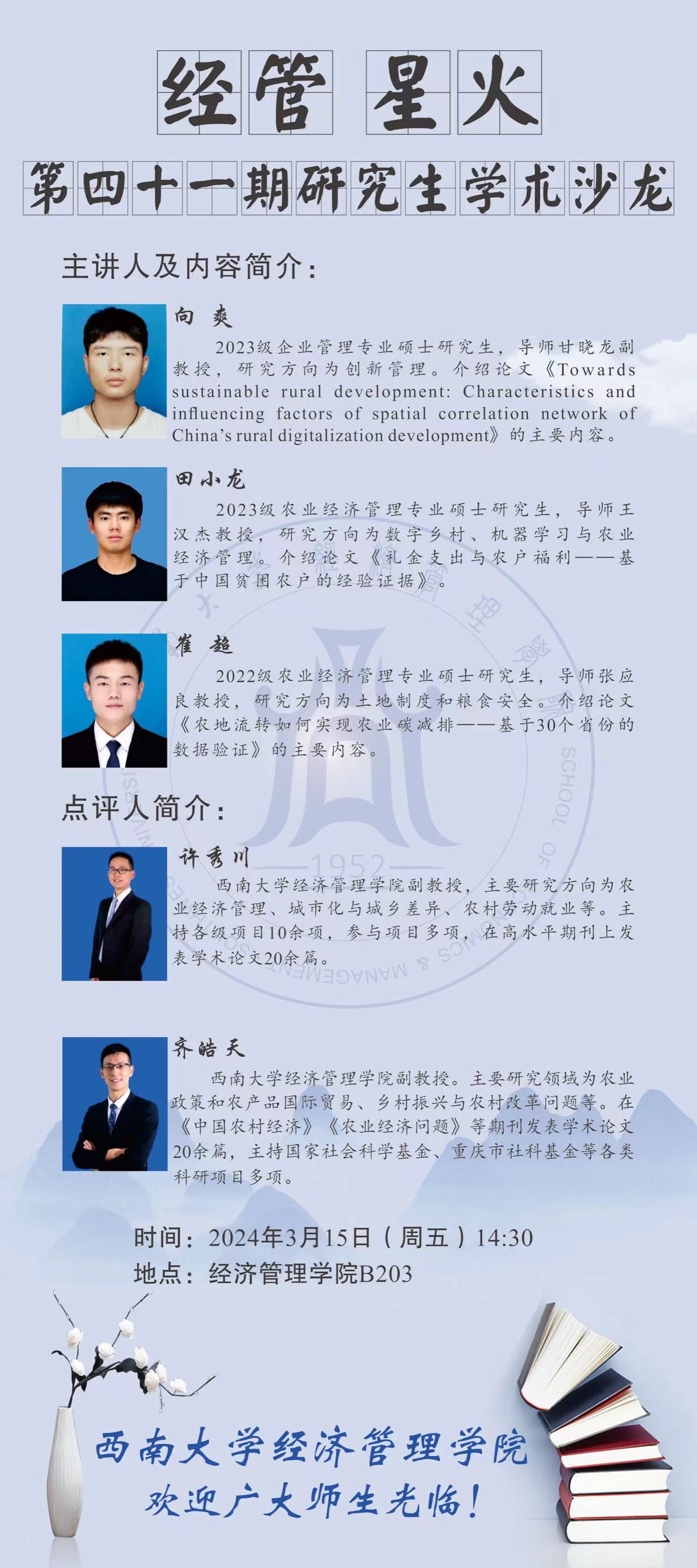 经管·星火 | 第四十一期研究生学术沙龙预告