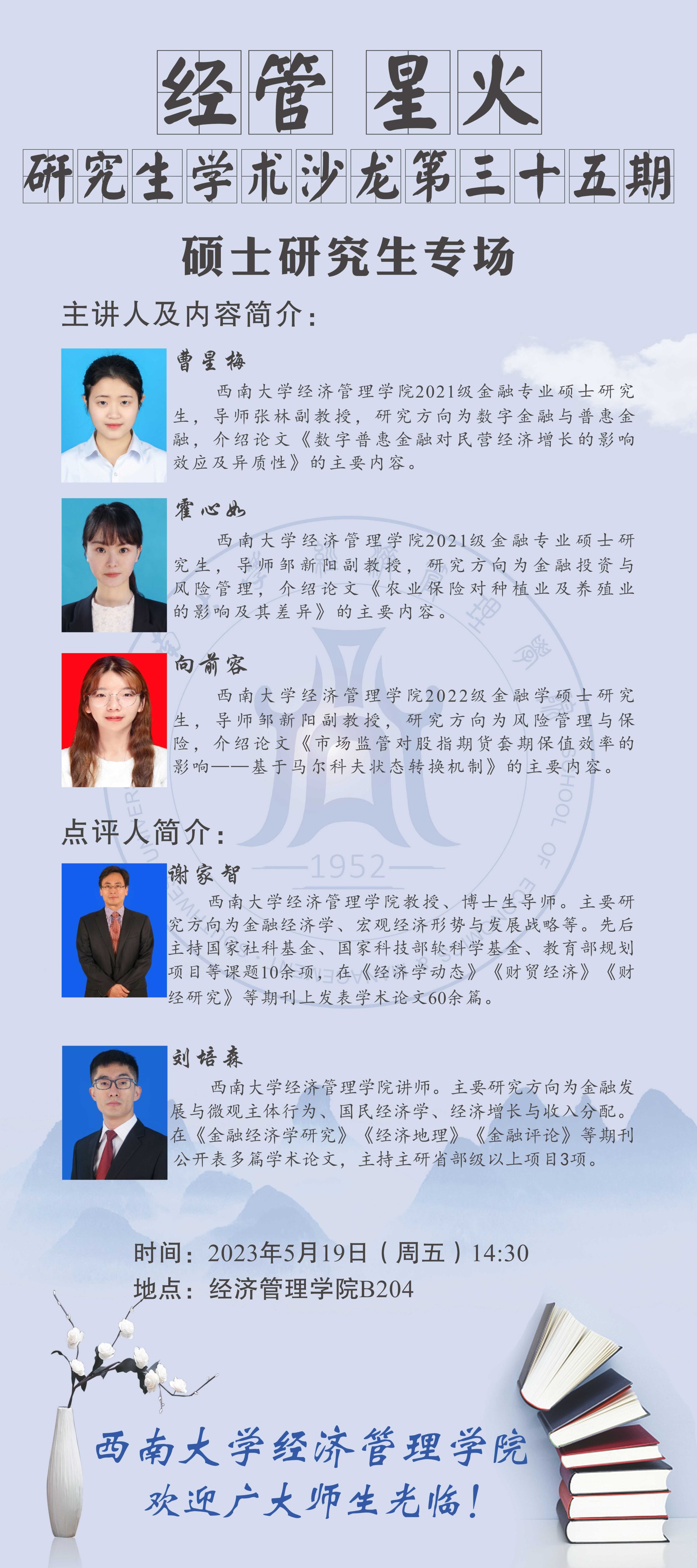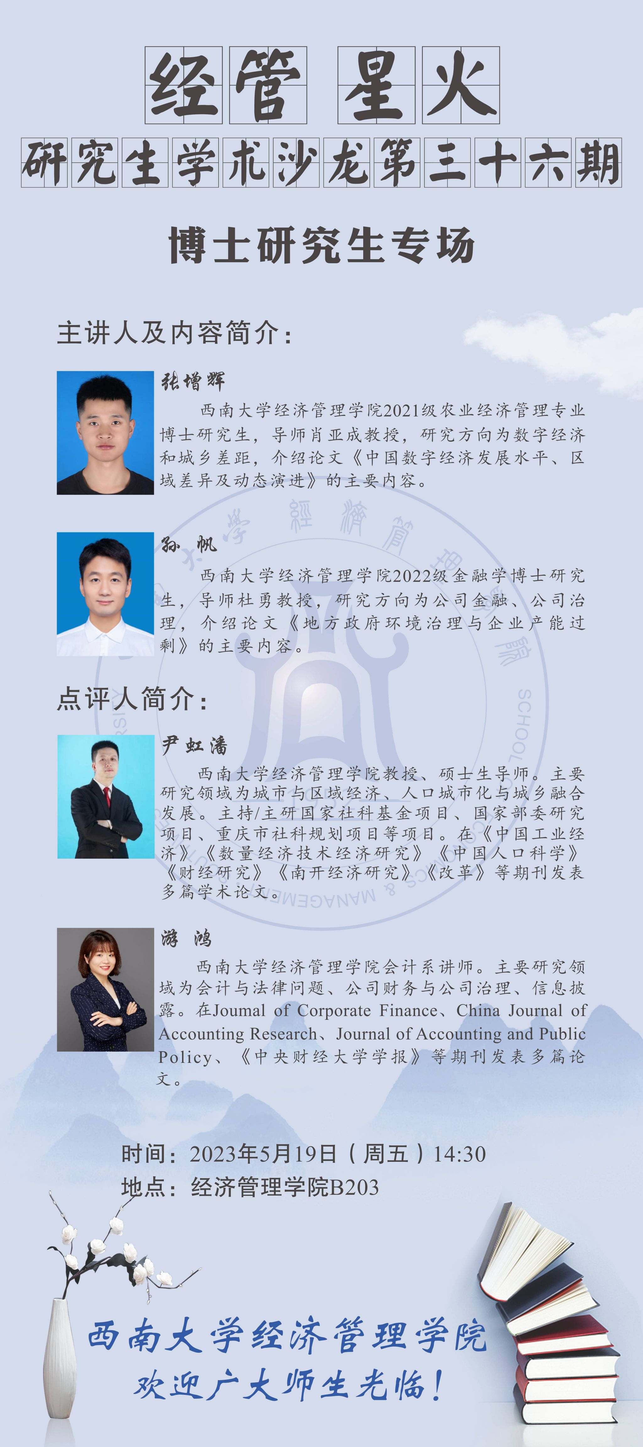 经管•星火|5月19日研究生学术沙龙预告