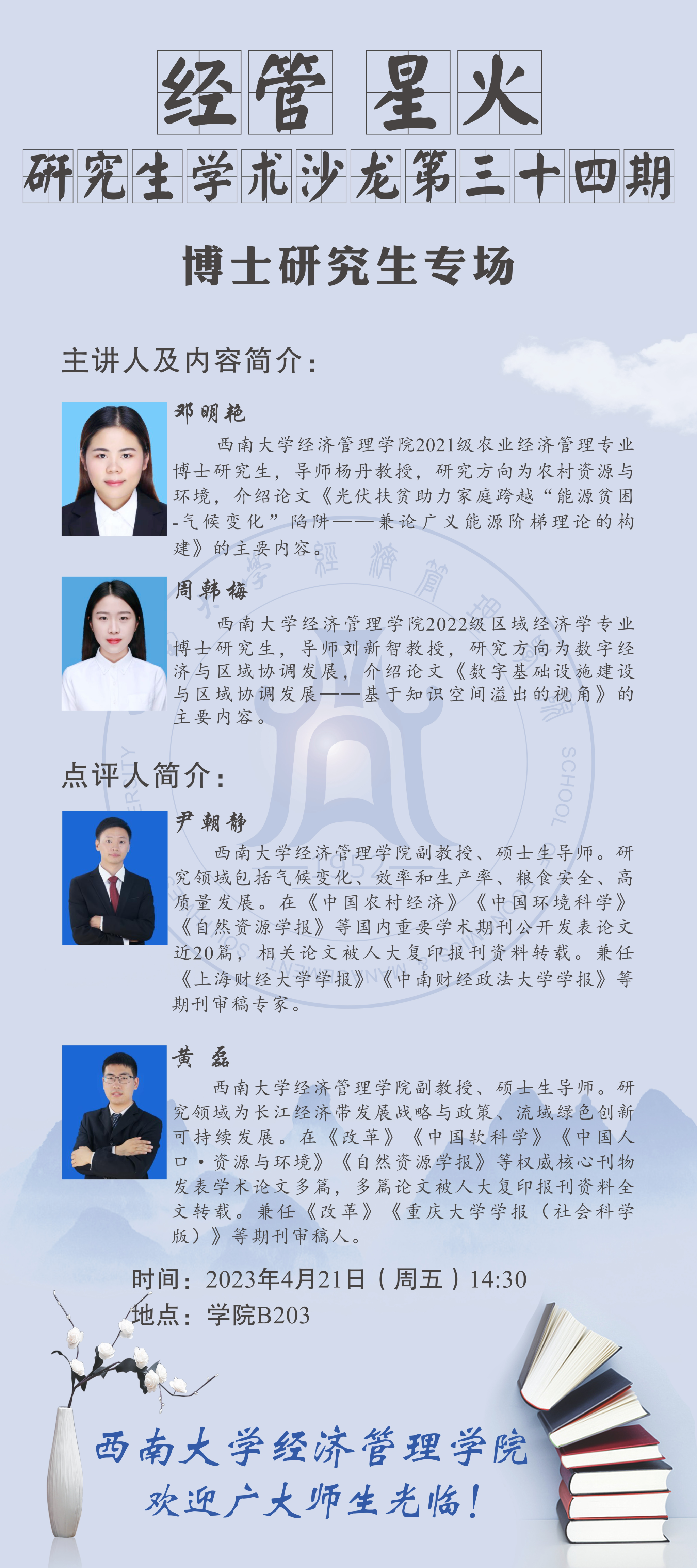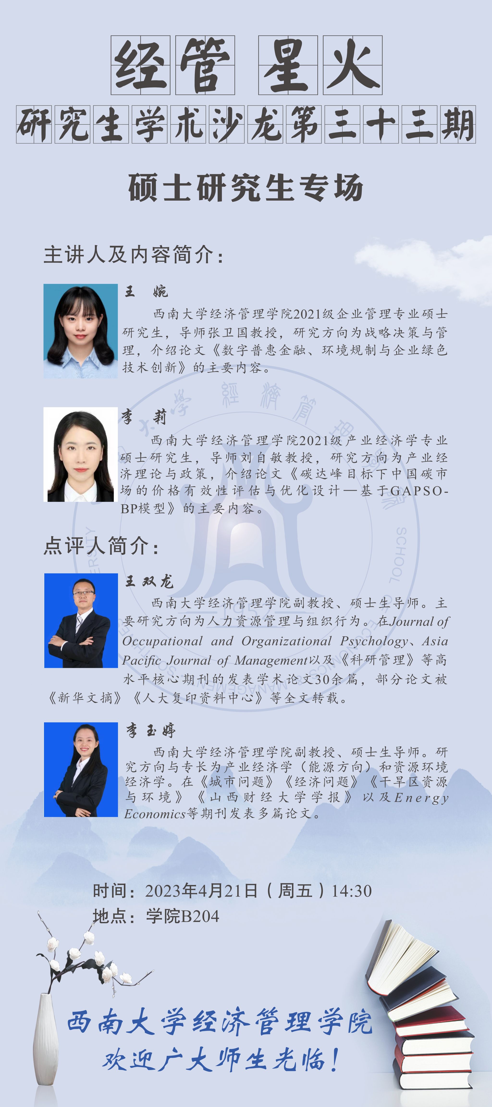 经管•星火|4月21日研究生学术沙龙预告