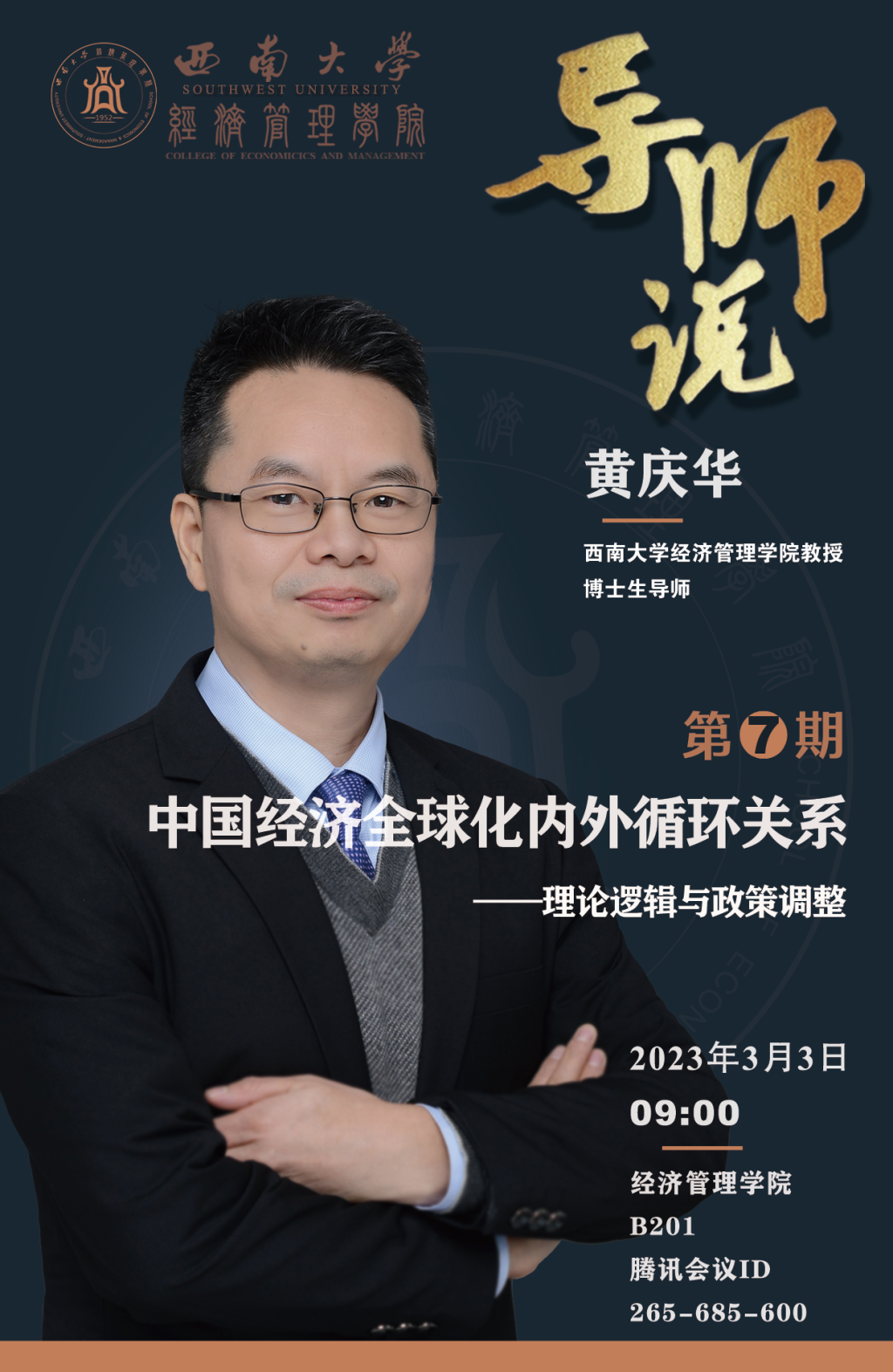 经管•导师说|第7期预告—黄庆华:中国经济全球化内外循环关系——理论逻辑与政策调整