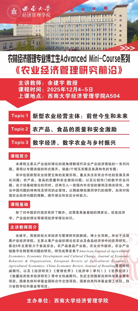 农林经济管理专业博士生前沿课程︱农业经济管理研究前沿