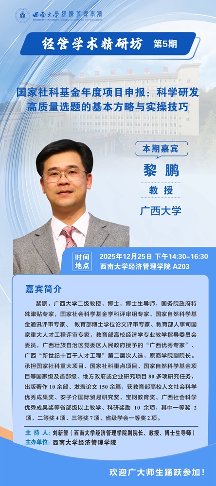 下一篇:经管学术精研坊︱国家级项目申报辅导