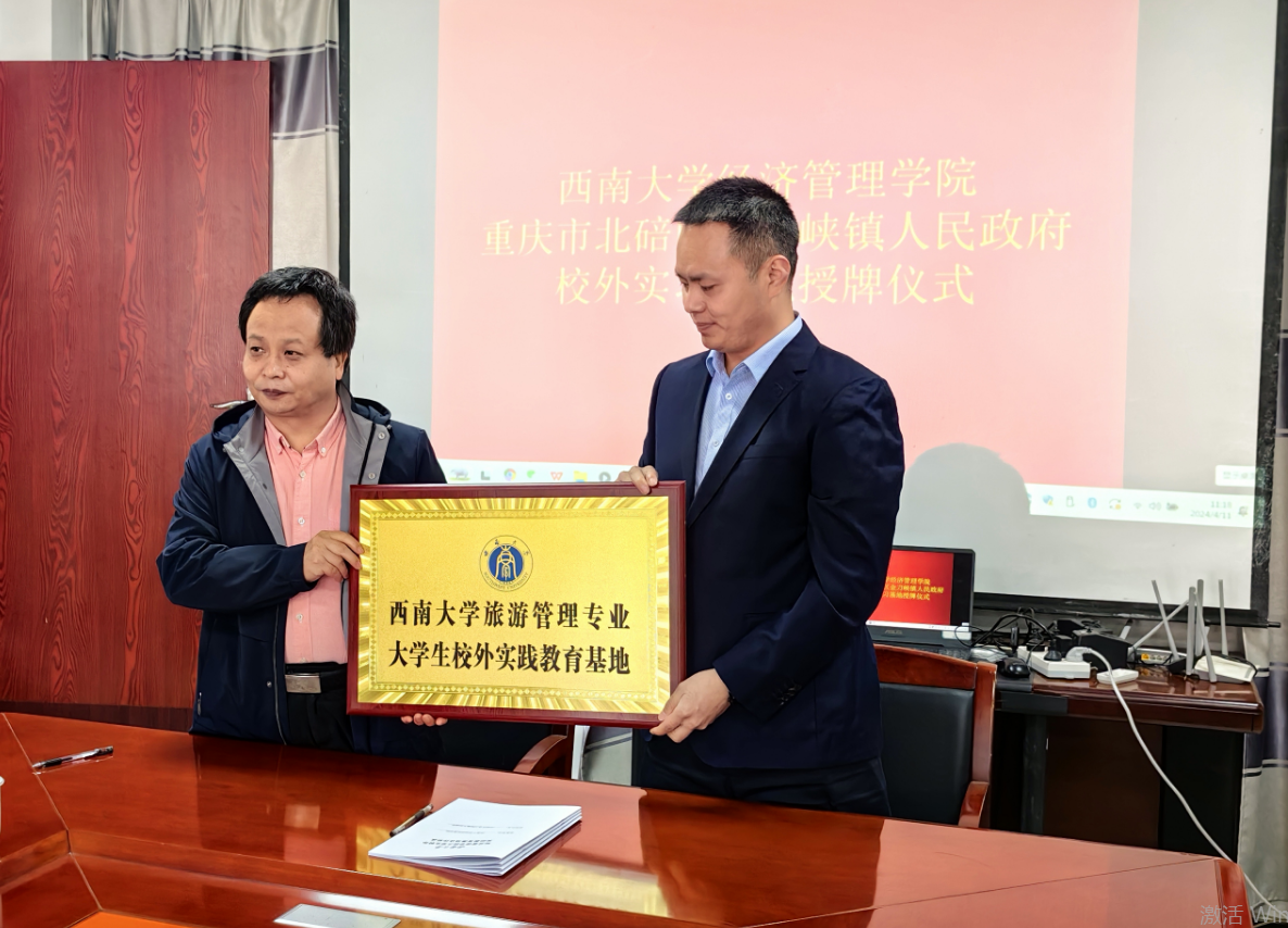 4月11日上午,公司与北碚区金刀峡镇人民政府共建旅游管理专业老员工校外实践教育基地签约暨揭牌仪式在金刀峡镇举行。金刀峡镇党委书记吕玉春,党委副书记、镇长邹文彬,公司党委书记卢跃进、教学工作办公室主任王小华、旅游管理系主任魏鹏等出席了此次签约暨揭牌仪式。