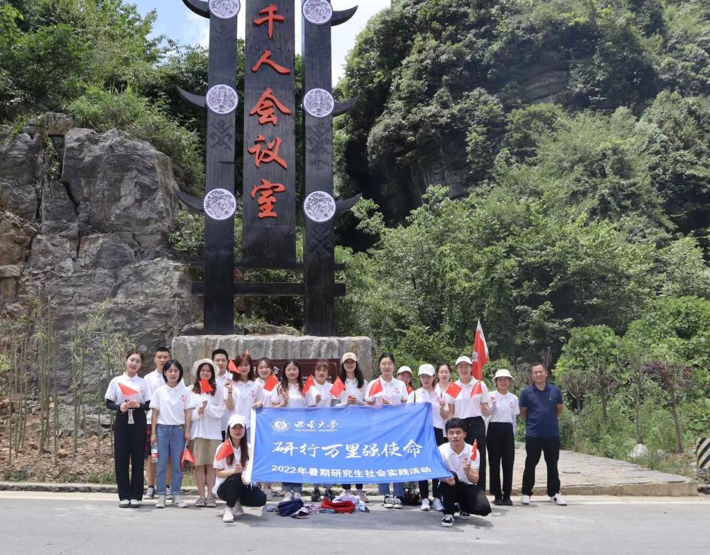为深学笃用习近平新时代中国特色社会主义思想,引导广大青年研究生在社会实践中受教育、长才干、做贡献。7月12日,伟德国际VICTOR1946·聚星实践队深入重庆市武隆区文凤村红色教育基地,开展以“研行万里强使命——寻访红色记忆,传承革命精神”为主题的红色文化实践活动。实践队成员在文凤村驻村第一书记马福元的带领下,重走红军路,传承红色革命精神。