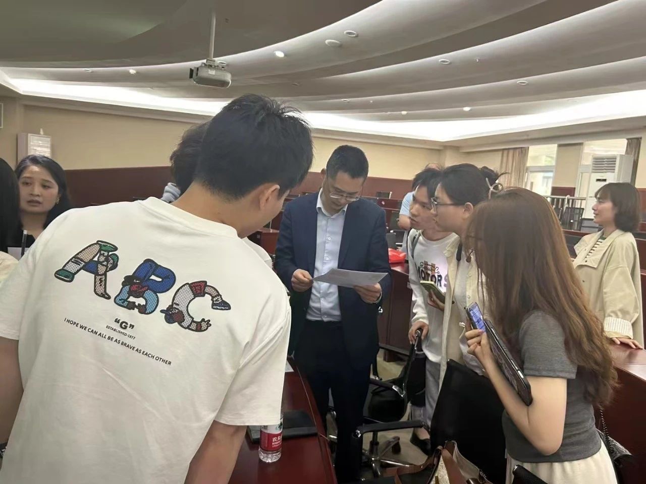 (图为胡根柏为同学们进行答疑解惑)