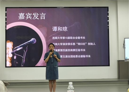 在活动分享环节,“商曰社”联合发起人夏小斐分享了演讲对个人成长的重要性以及她在第四届国际商公司演讲挑战赛中的感受。她鼓励大家勇于挑战自我,坚持热爱,用演讲的力量点亮人生。