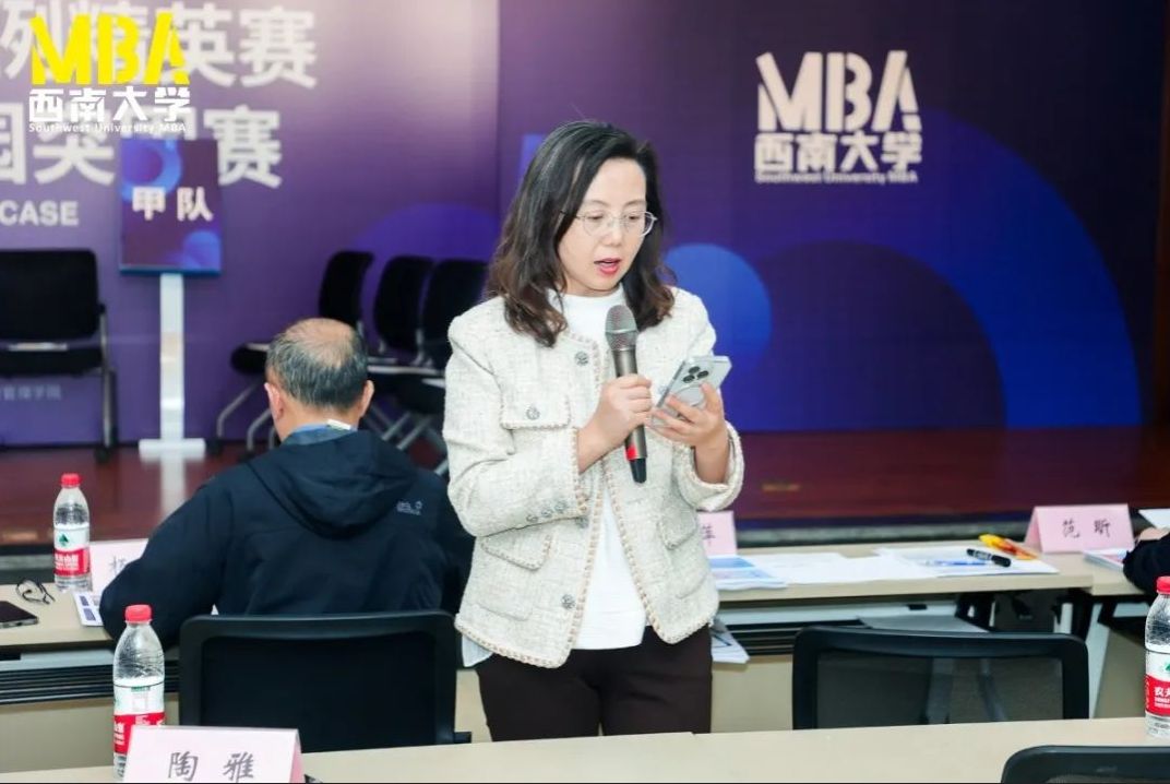 重庆亿琅投资管理有限公司罗东秋董事长、公司邓宗兵教授、杨刚教授、石声萍副教授、刘向强副教授、范昕老师组成B101赛场专家评审团,公司案例中心主任石声萍为评审团主席,陶雅老师、唐健老师、史轩亚老师以案例指导老师的身份莅临比赛现场。B101赛场的主持人是2023级大成班郭均颖、杨诗其。