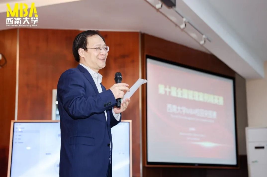 工商管理系主任邓宗兵为比赛致辞。邓主任强调“全国管理案例精英赛”是目前国内规模最大、分布面最广、竞赛制度最规范、水平最高的全国性管理案例大赛。通过对社会经济热点案例的分析与讨论,高度模拟现实商战,有效提升同学们的综合分析与决策能力。他表示次大赛的举办,不仅是对bv伟德国际1946MBA教育成果的一次全面展示,更是对全国MBA专业高质量发展的有力推动。