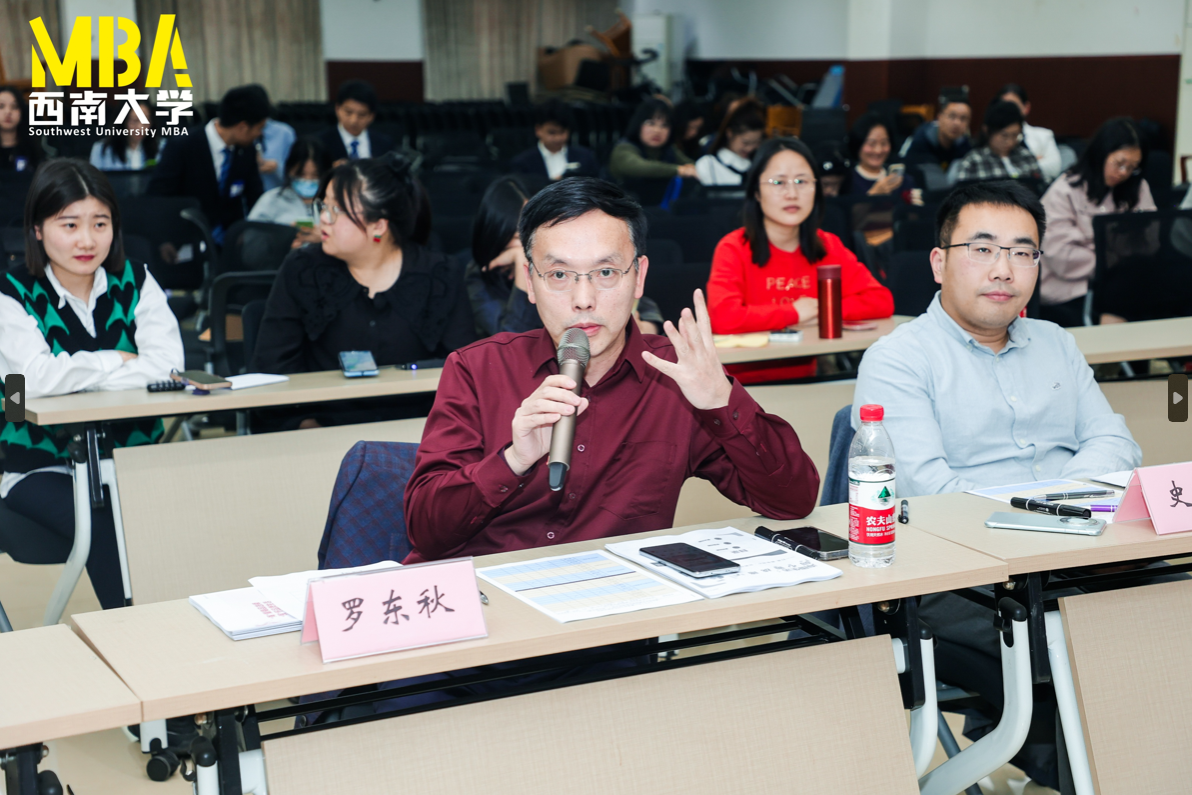 重庆市农业投资集团王千六副书记、前重庆农畜产品交易所总裁代激扬先生、公司金绍荣副教授、王双龙副教授、刘建新副教授、江娟丽副教授、黄燕萍老师组成B401赛场专家评审团,公司科研与团队建设办公室主任刘建新为评审团主席,李沁洋教授、甘小龙副教授以案例指导老师的身份莅临比赛现场。B401赛场的主持人是2023级博雅班庞楠、2023级含弘1班陈星。