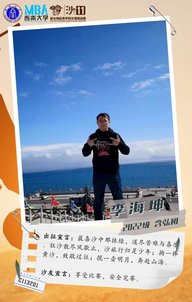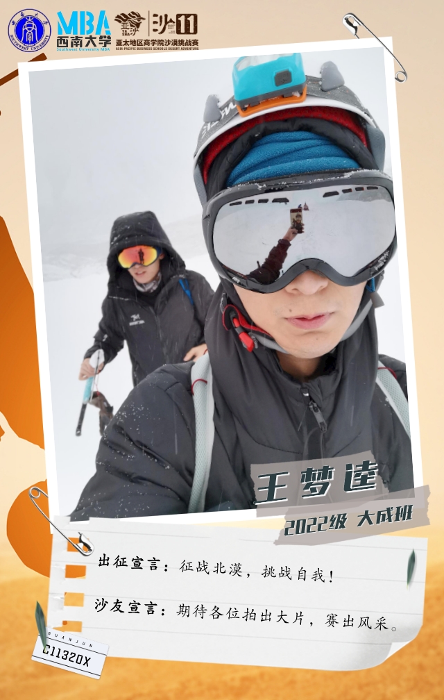 他在敦煌有过一次沙漠徒步经历,在MBA亚沙宣讲中了解亚沙后,果断报名参加沙11