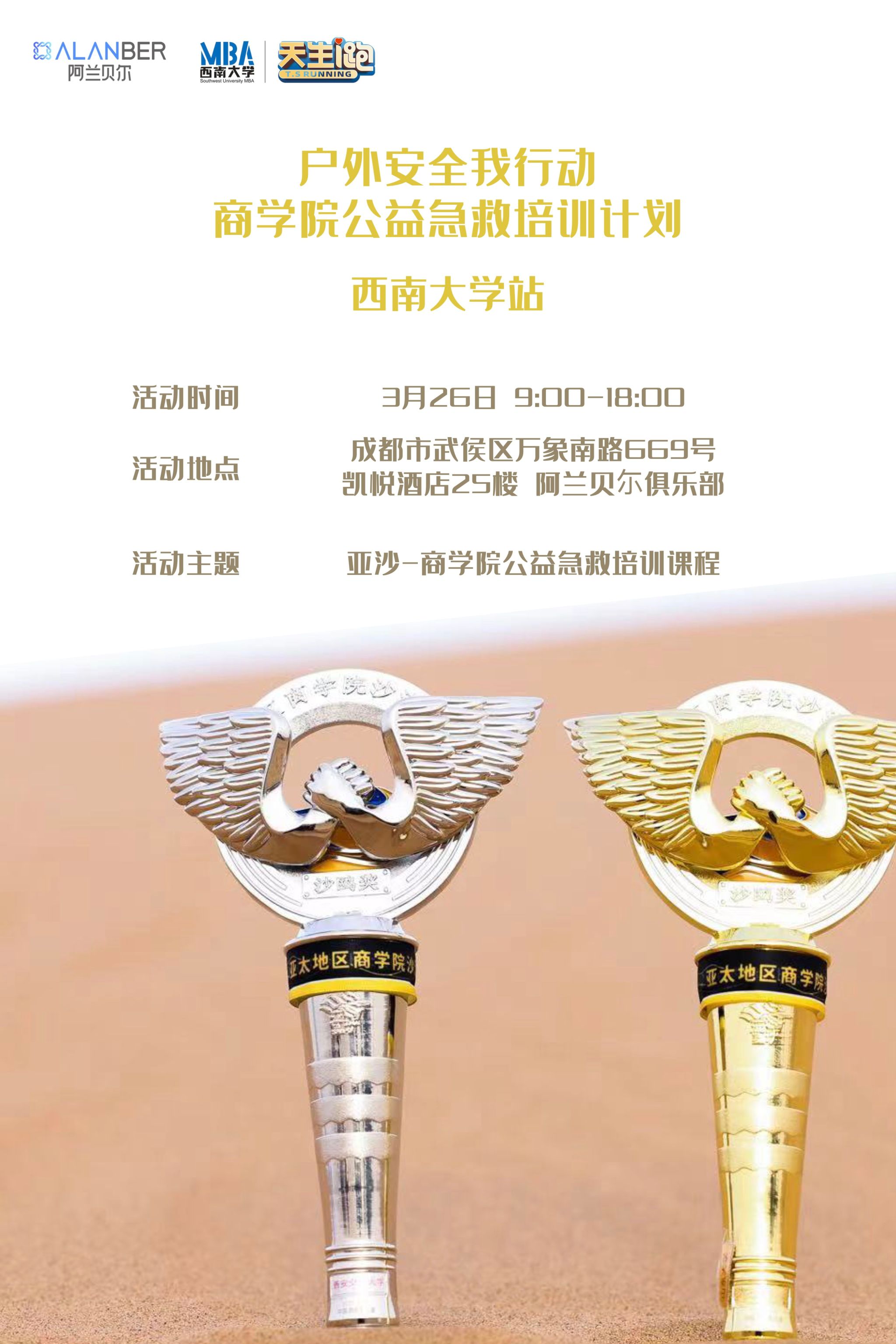 俱乐部一直高度重视队员们的运动安全,且2023年沙11出征在即,队员们正紧锣密鼓进行训练。为增强大家参与户外运动的安全性,加强应急救护意识,提高自救互救的能力,3月26日,在亚沙组委会的大力支持下,由亚沙公益中心主办,俱乐部承办的商公司公益急救培训bv伟德国际1946专场活动在成都阿兰贝尔俱乐部顺利举办。