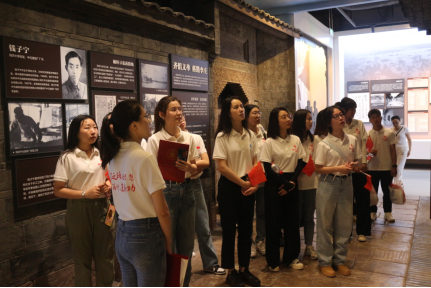 在李庄抗战文化博物馆内,实践队就地开展“学思力行二十大”主题微党课宣讲学习。结合李庄文化博览馆情况,2021级金融专业硕士研究生赵佳玲作为主讲人,向实践队阐释了“伟大建党精神”和“传承红色基因”的丰富内涵。弘扬伟大建党精神,传承红色基因,就是学习英雄前辈们不怕吃苦,不畏艰险的精神。