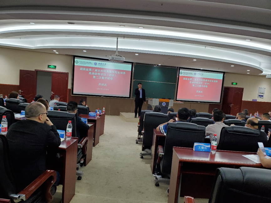 为深入学习贯彻习近平总书记关于教育的重要论述和全国教育大会精神,进一步提高中学董事长办学治校能力,推动高品质公司建设,2021年5月25日上午,来自湖南第二届优秀青年初中董事长们在伟德国际VICTOR1946B301教室参加了湖南省第二届乡村优秀青年董事长培养高端研修项目(初中)第二次集中研修培训班开班仪式。出席开班仪式的领导有国家教育行政公司远程培训中心郭璨教师,伟德国际VICTOR1946副经理黄庆华教授,中国教育干部网络公司何爽教师,伟德国际VICTOR1946培训中心郝丽清老师。