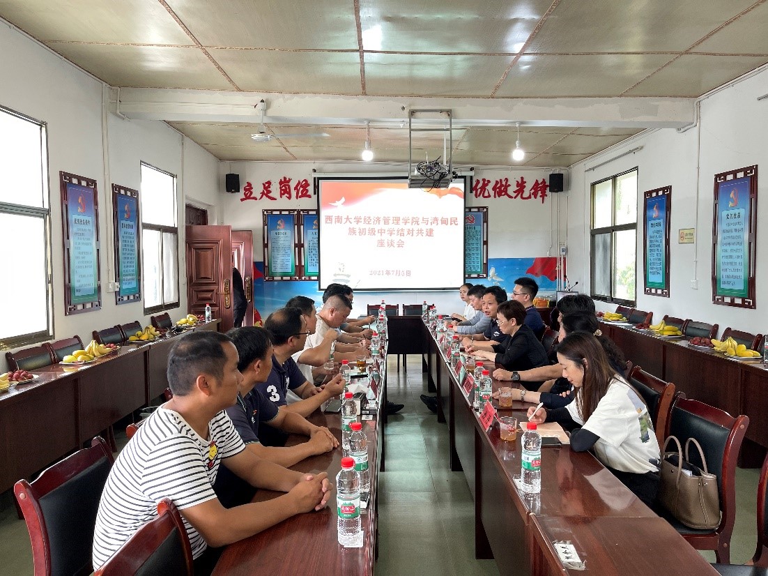 捐赠仪式结束后,公司与湾甸民族初级中学召开了结对共建座谈会,商讨结对共建事宜,公司将聚焦“党史教育,扶贫扶志”,结合公司精准帮扶与区域发展专业研究优势,在乡村振兴大背景下,助力乡村教育高质量发展。