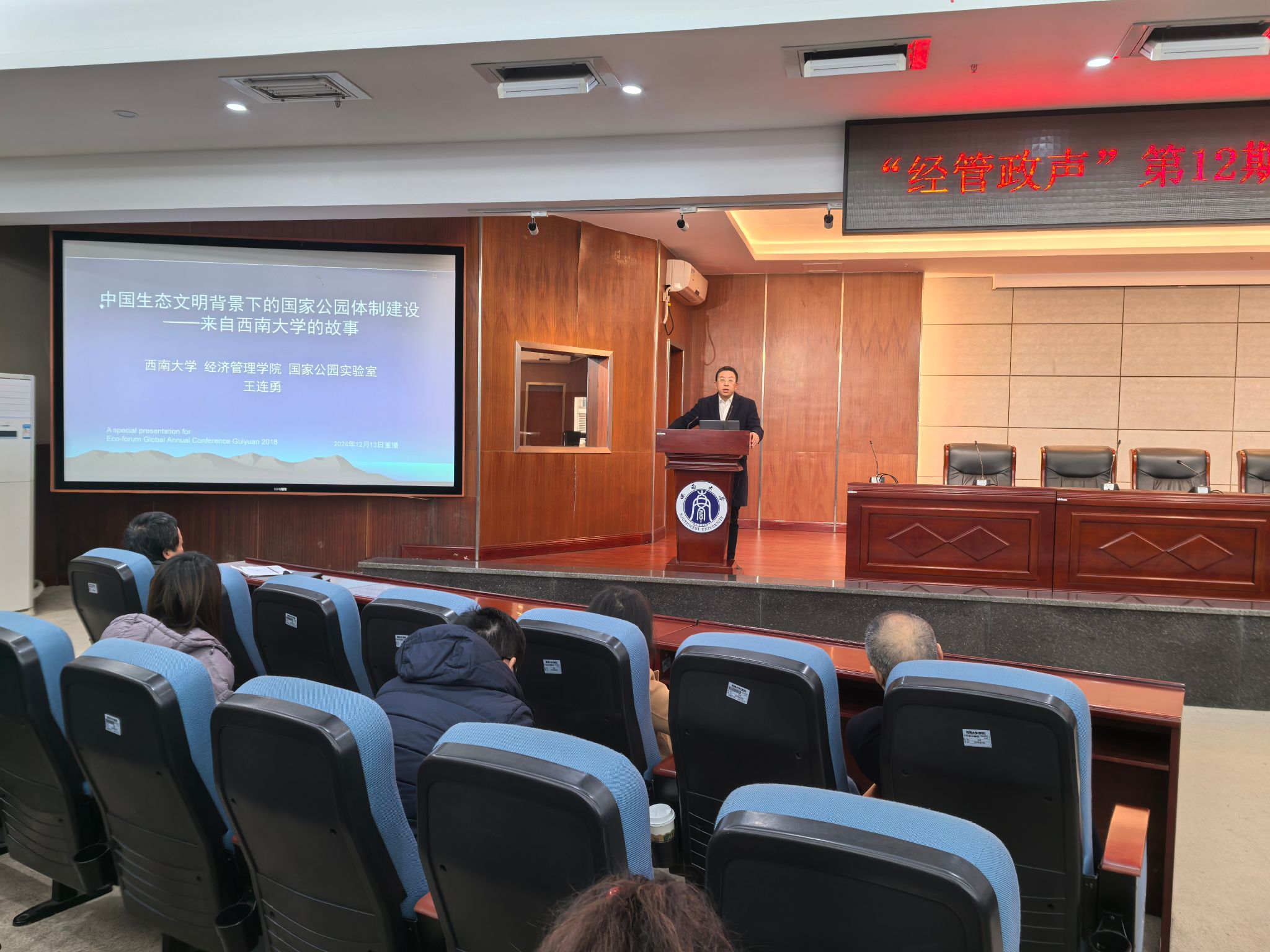 12月13日下午,公司“经管政声”第12期在B401报告厅顺利举行。公司王连勇教授以《中国生态文明背景下的国家公园体制建设——来自bv伟德国际1946的故事》为题,为全体教职工作报告。本次活动由公司党委书记卢跃进主持。