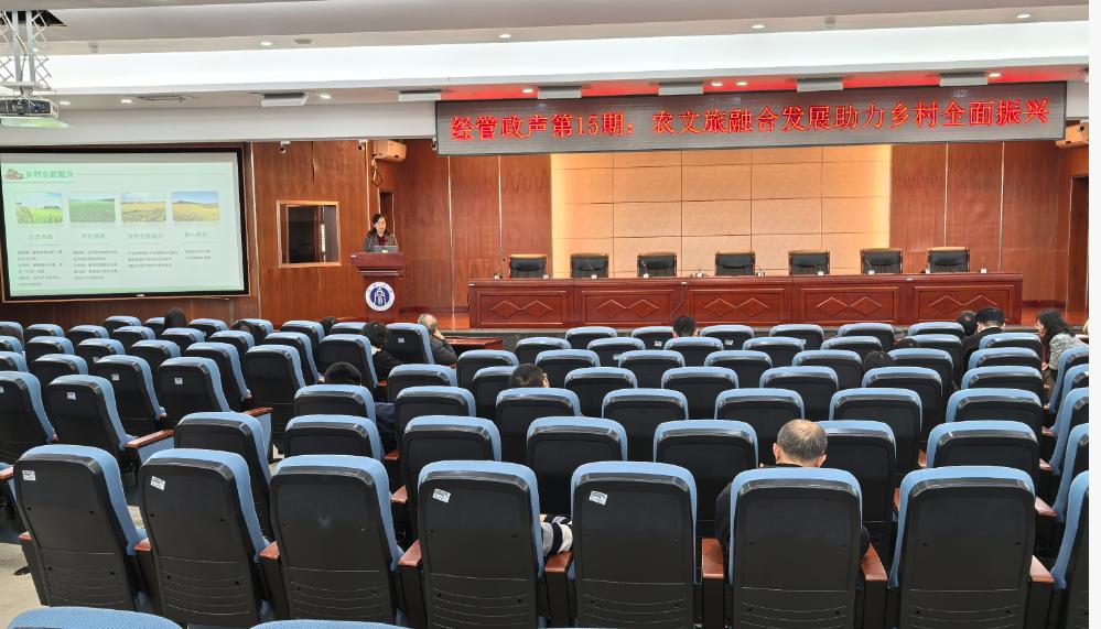 11月7日下午,公司“经管政声”第15期在B401报告厅顺利举行。公司黄国庆教授以《农文旅融合发展助力乡村全面振兴》为题,为全体教职工作报告。本次报告由公司党委书记卢跃进主持。