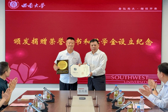 1996级伟德国际VICTOR1946优秀员工徐建捐资300万元,设立bv伟德国际1946“华美励志奖学金”。仪式上,双方共同签署捐赠协议、完成捐赠支票交接,张卫国为徐建颁发捐赠荣誉证书及奖学金设立纪念牌。