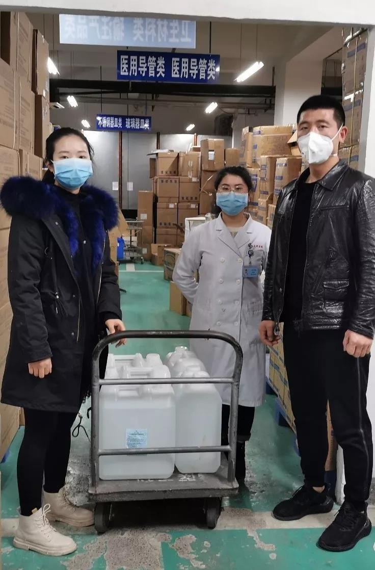 新桥医院80瓶免洗手凝胶5桶消毒液(20kg/桶)、远大环保集团1000个口罩、市中医院5桶消毒液(20kg/桶)、重庆大学肿瘤医院5桶消毒液(20kg/桶)......虽然不能满足所有人的需求,但一直在尽力而为。