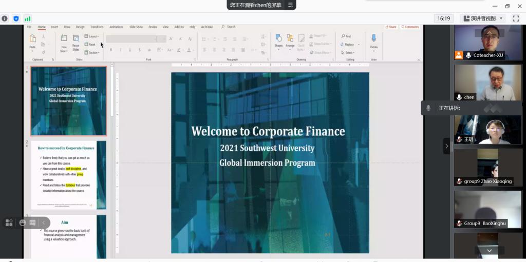 7月12日上午,第三届暑期国际课程周云课堂正式开讲。伟德国际VICTOR1946邀请到了美国西卡罗莱纳州商公司金融系陈海洋教授,以及老朋友加拿大阿尔伯塔省公立麦科文大学商公司William Wei教授,为本科生开设了《公司金融学》《国际商务案例研究》2门全英文国际课程。