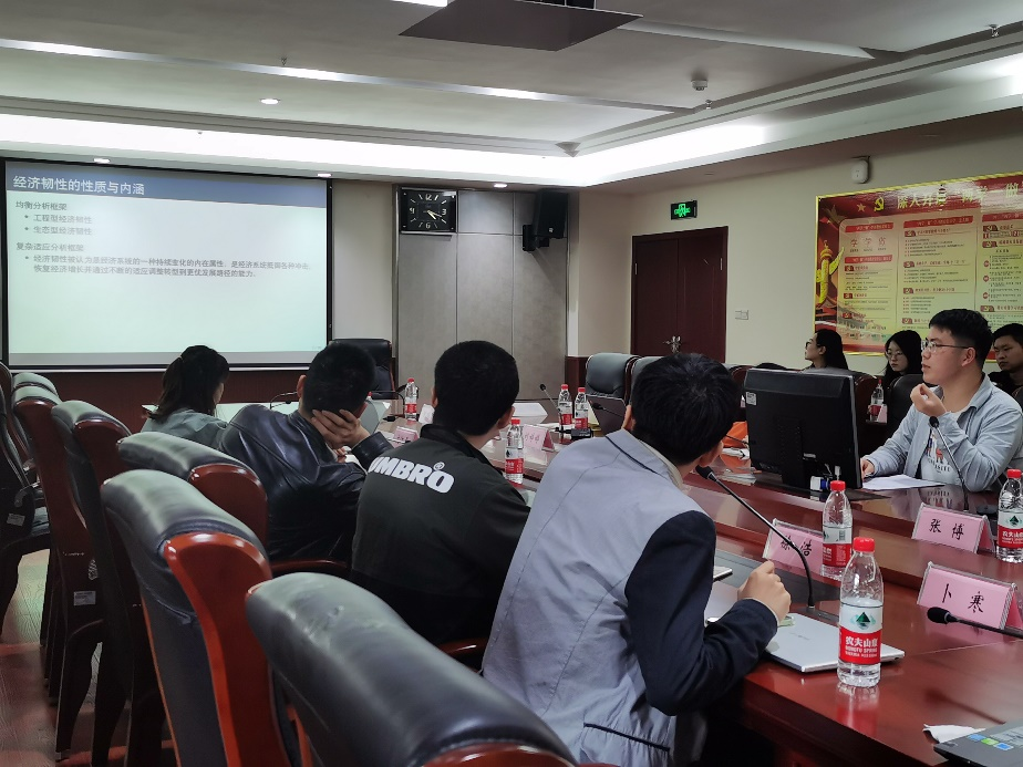 王小华、徐浩两位老师对两位同学的论文进行认真地分析和点评,就两篇论文的选题意义、框架逻辑、数据和模型选取、结论总结以及文字表述等提出针对性的意见和建议。他们认为论文写作中需用词精准、用语流畅及前后统一,要注重数据、变量和方法选取应符合现实实际,同时提出参考文献应丰富和及时更新。期间,有博士研究生就论文中二次解释实证结果等问题向点评老师提问,两位老师就同学们的提问进行了热烈地讨论和耐心地解答。