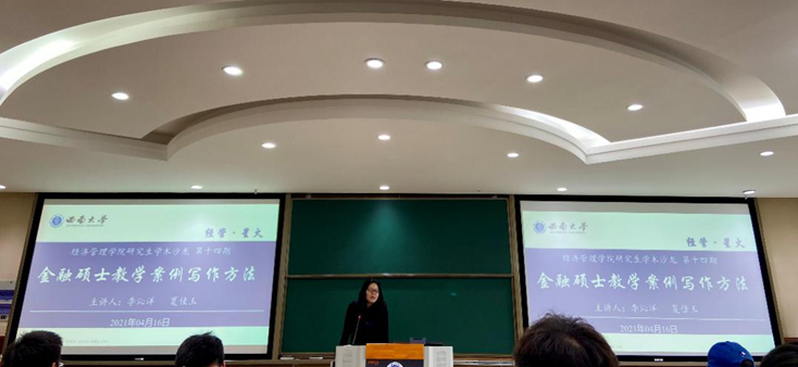 “经管·星火”研究生学术沙龙第十三期(金融硕士专场)重点围绕如何撰写金融硕士教学案例这一主题进行,公司李沁洋副教授、2019级金融专业硕士研究生夏佳玉担任主讲人,公司党委副书记田丽及2020级金融专业硕士研究生参加。沙龙由2020级硕士研究生韩威鹏主持。