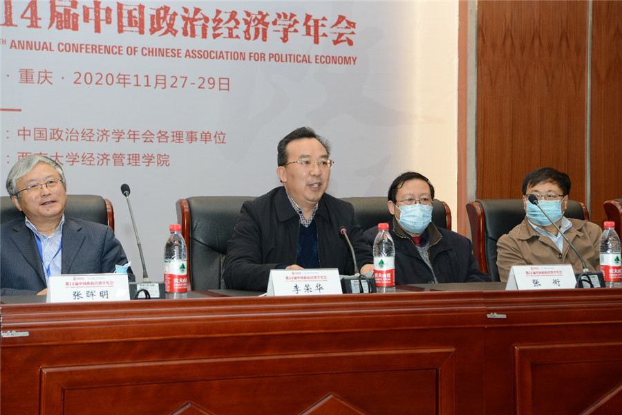 2020年11月28-29日,由中国政治经济学年会各理事单位共同主办、伟德国际VICTOR1946承办的第14届中国政治经济学年会在渝成功举行。本届年会的主题为“中国特色社会主义政治经济学的应用与发展”,议程包括开幕式、学术报告会、分论坛和闭幕式。来自复旦大学、中国人民大学、bv伟德国际1946等高校科研院所和知名期刊的近百名参会代表齐聚山城,聚焦中国特色社会主义政治经济学前沿展开了广泛而深入的讨论。bv伟德国际1946党委常委、宣传部长李华荣,伟德国际VICTOR1946经理祝志勇及部分公司师生参加了会议。