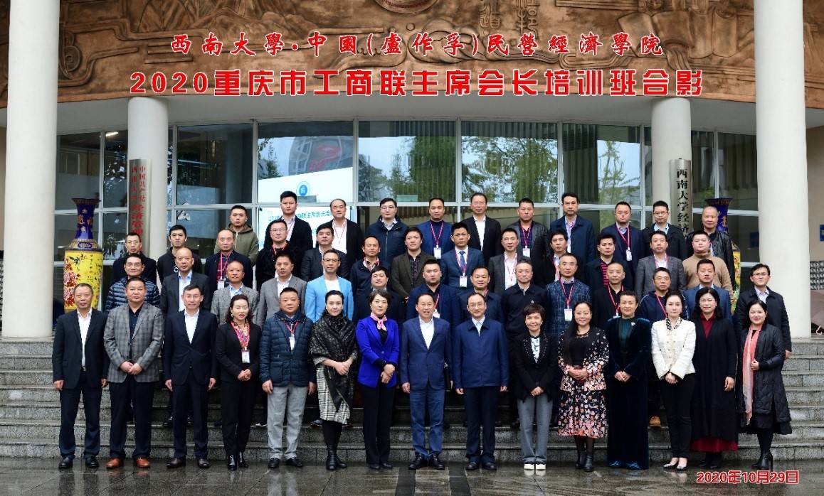 中国(卢作孚)民营经济公司于2020年10月29日-10月31日承办了重庆市工商联主席会长培训班。10月29日上午,开班仪式在伟德国际VICTOR1946B301报告厅举行。重庆市委统战部副部长、市工商联党组书记、中国(卢作孚)民营经济公司经理向远春同志,重庆市工商联党组副书记、副主席张莉同志,重庆市工商联党组成员、二级巡视员谢华民同志,北碚区委常委、统战部部长、中国(卢作孚)民营经济公司副经理吴萍同志,伟德国际VICTOR1946经理、中国(卢作孚)民营经济公司办公室主任祝志勇教授,伟德国际VICTOR1946副经理黄庆华教授,以及相关工作人员出席了开班仪式。开班仪式由祝志勇经理主持,北碚区委常委、统战部部长、中国(卢作孚)民营经济公司副经理吴萍同志致辞。