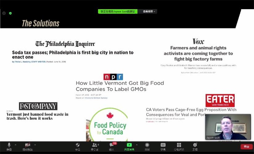 美国普渡大学农业经济系主任Jayson Lusk教授重点讨论了在当前食品供需体系导致肥胖和营养缺乏并存、饮食相关疾病以及环境问题的背景下如何评价食物政策。他提出评价政策好坏的标准是看它能否在保留人们自由选择权利的前提下,高效、公平地解决市场失灵,能否实现预期结果且无意外后果发生。他通过研究法国消费者对提高不健康食品价格和降低(或补贴)健康食品价格政策的反应,得出了低收入家庭对价格激励措施反应更小的结论。他认为强制性GMO(转基因)标签可能会向消费者传递转基因食物比常规食品更风险的信号,导致带有转基因标签的食物消费量减少,而实际上美国民众对转基因标识食品与非转基因食品的偏好相差无几,他指出仅使用简单的民意测验不能判断美国食品标签政策的好坏。随后,他讨论了政策失败的几点原因,即分析人员缺乏足够的知识和背景、缺乏研究方法、民众存在错误的科学与价值观。最后他在动物福利的背景下谈论了提高动物福利带来的肉类食品溢价问题。