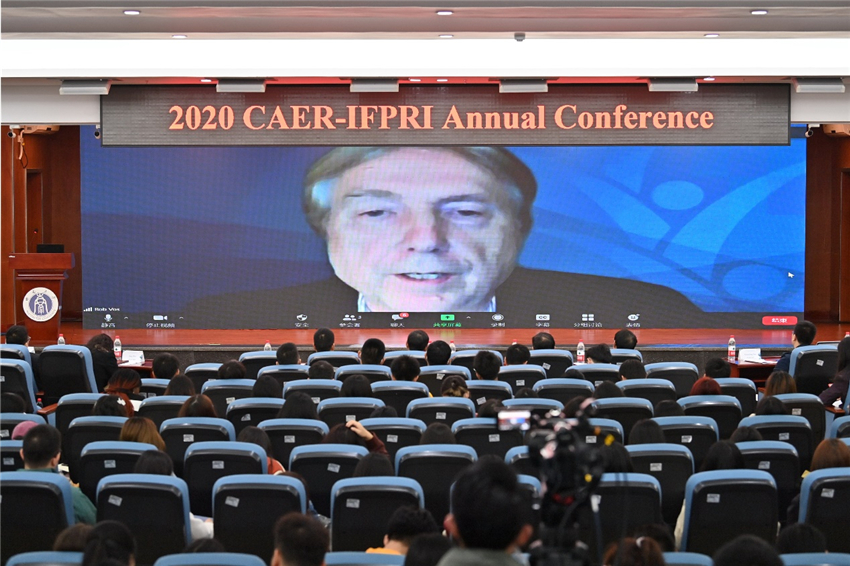 Rob Vos在致辞中表示,对于因疫情影响无法现场参会表示非常遗憾。他对CAER和IFPRI长期合作,多次成功举办CAER-IFPRI学术年会表示祝贺。他指出国际合作研究不仅有益于中国应对经济发展的挑战,对全球实现消除贫困和零饥饿的目标也具有重要作用。