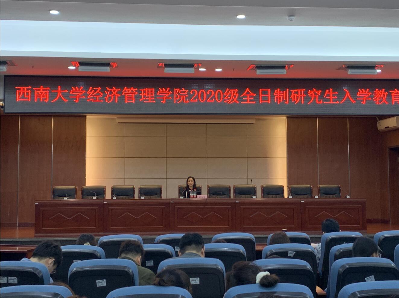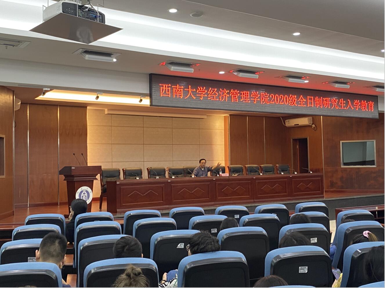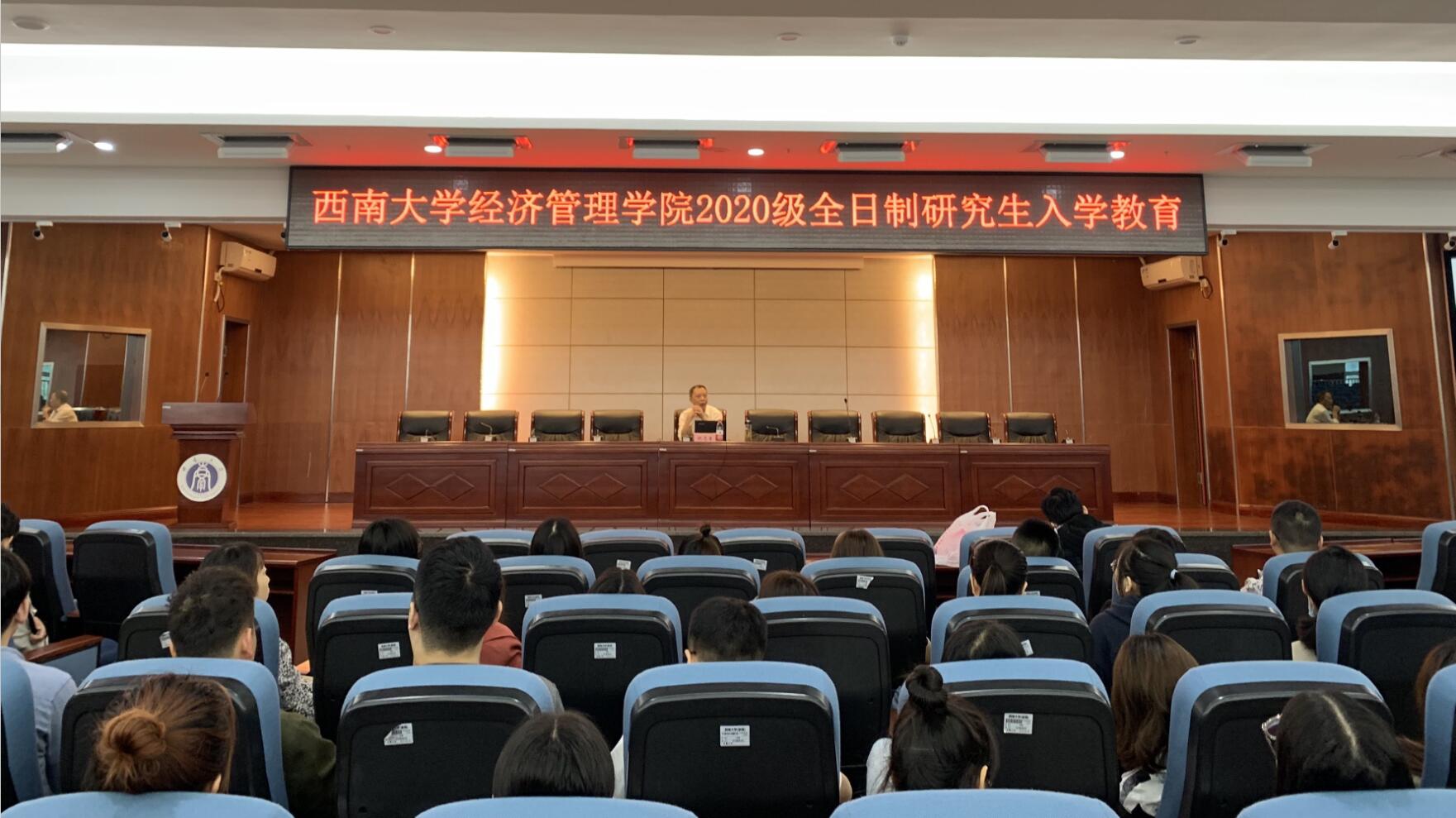 除专题讲座外,公司还举行了2020级专业学位研究生专业教育和师生师见面会。公司MF中心主任王定祥、MAE中心主任周洪文、MPAcc中心主任刘向强分别对金融硕士、农业硕士和会计硕士进行了专业教育。他们从专业型硕士的培养方向、课程设置体系、培养基本要求、毕业积分制管理及要求、核心竞争力、加强研究方法学习和训练等方面详细而具体地为同学们介绍分析了专业型硕士的学科特点,鼓励同学们转变学习方式、培养研究思维。