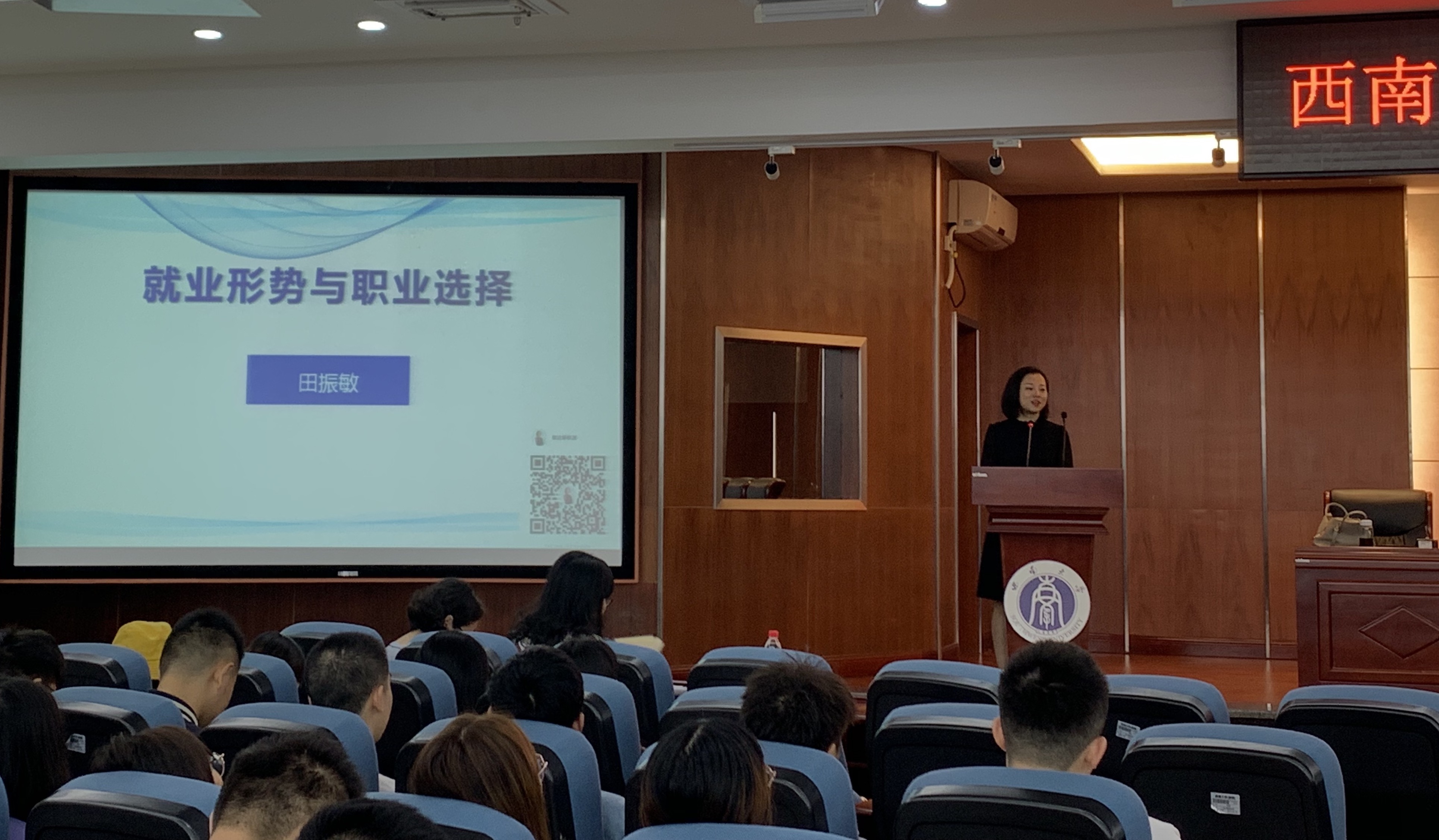 集团人才招聘处就业指导与管理科科长田振敏以就业形势与职业选择为主题指导新生开展职业生涯规划。她从高校毕业生就业形势入手,分别从老员工就业七大渠道解读”“职业定位”“个人职业发展策略及准备三个角度向新生们强调了建立正确职业价值观的重要性与提前做好就业准备的必要性。