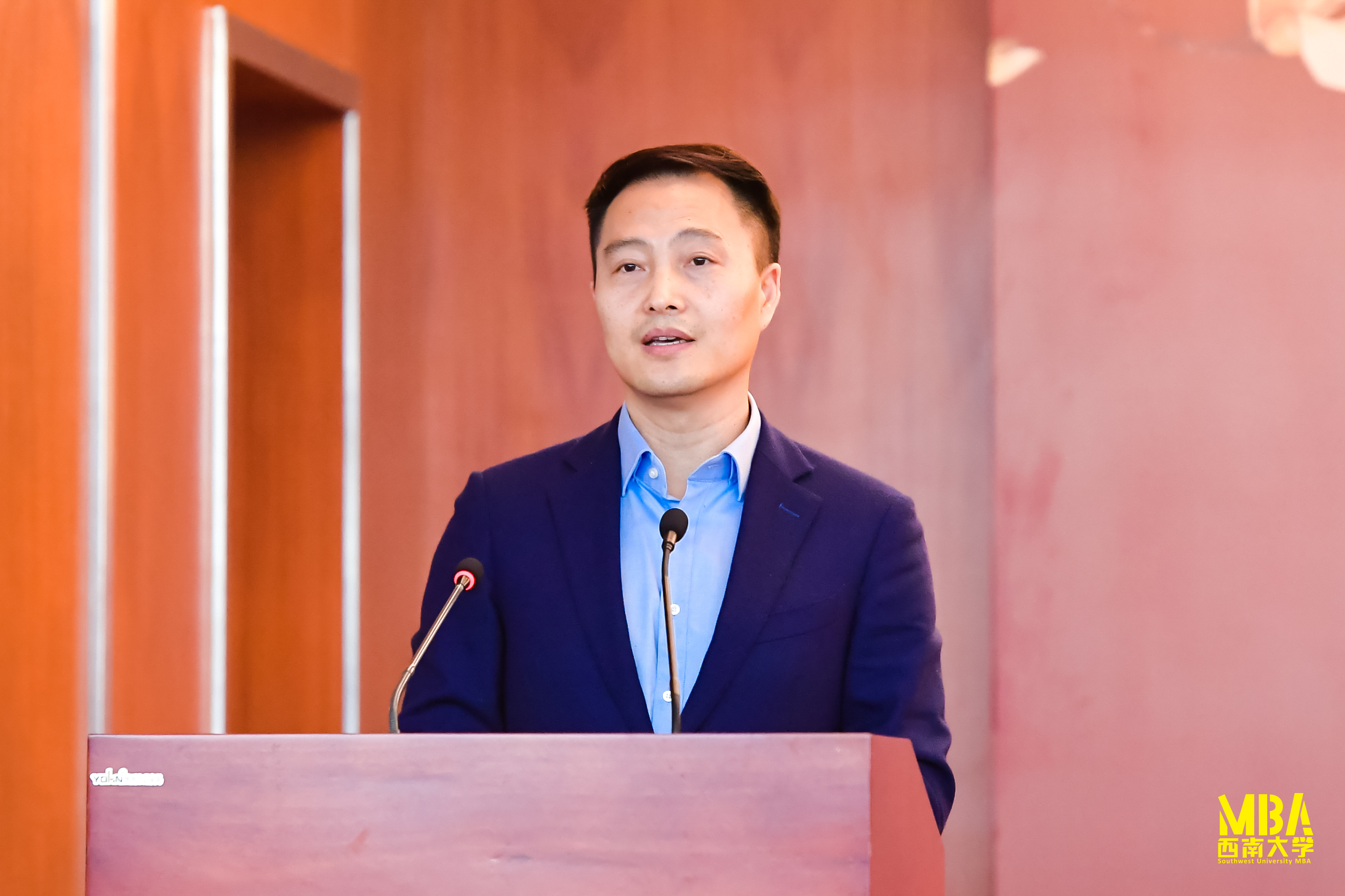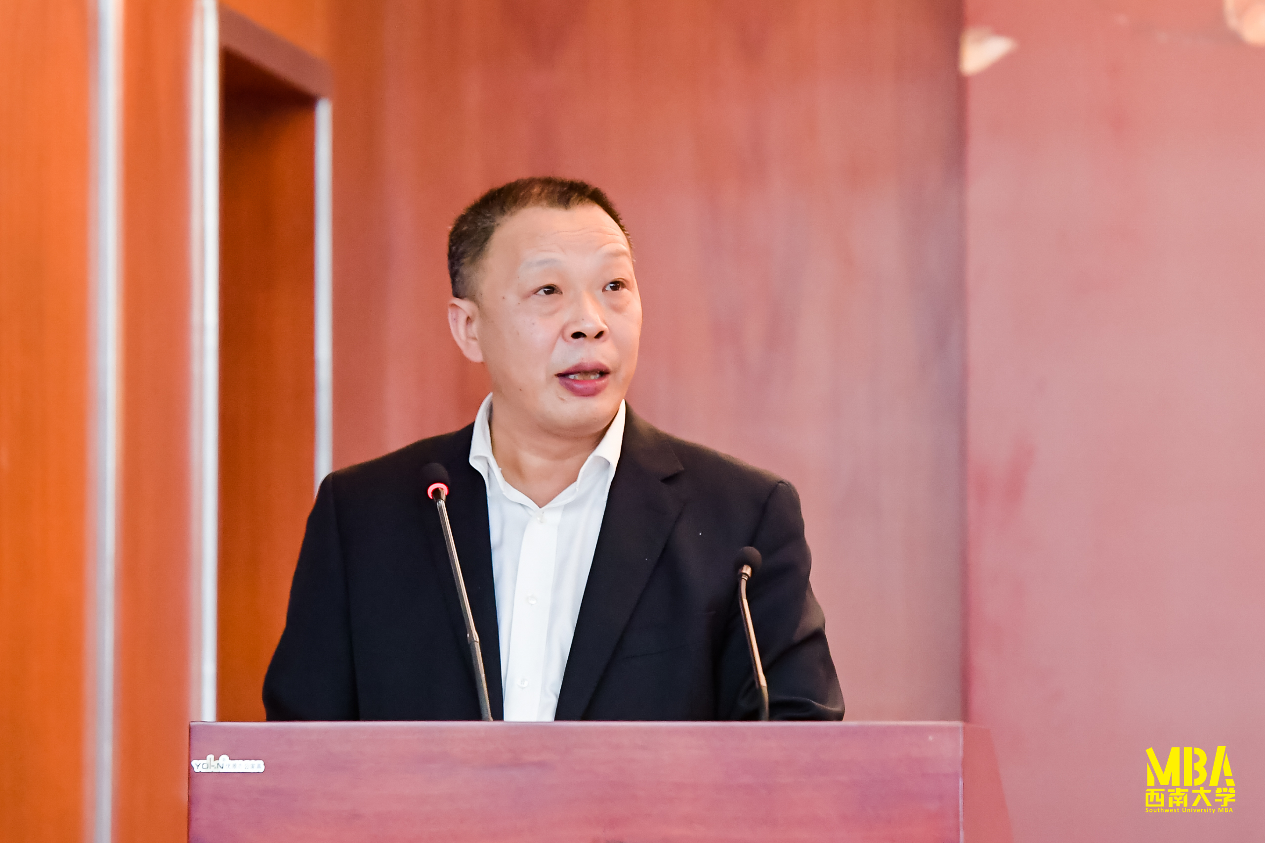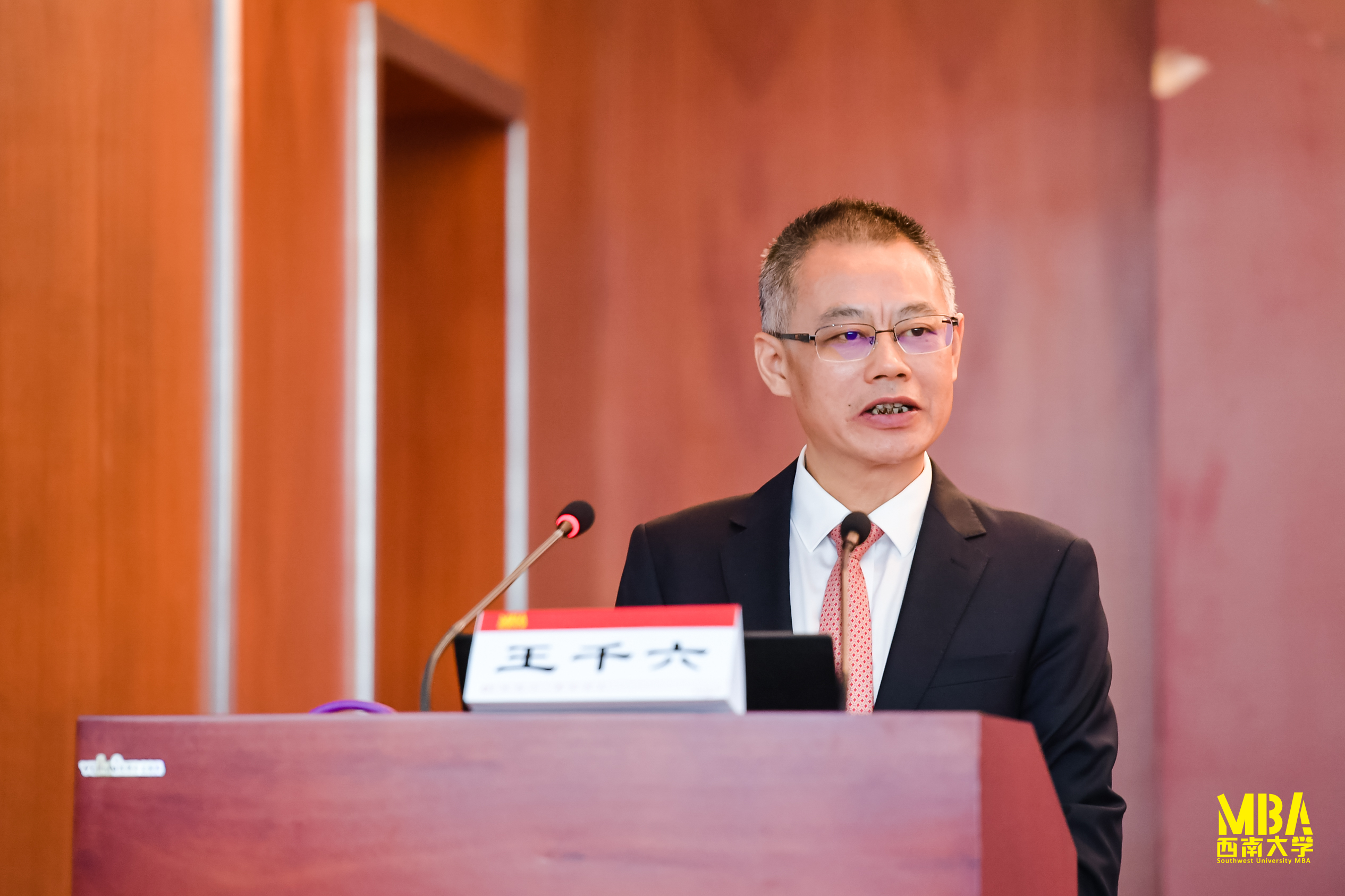 典礼的主题报告阶段,重庆农业投资集团党委副书记、总经理王千六博士以“现代企业管理与创新”为题,给同学们分享了自己在企业经营过程的经验和体会。