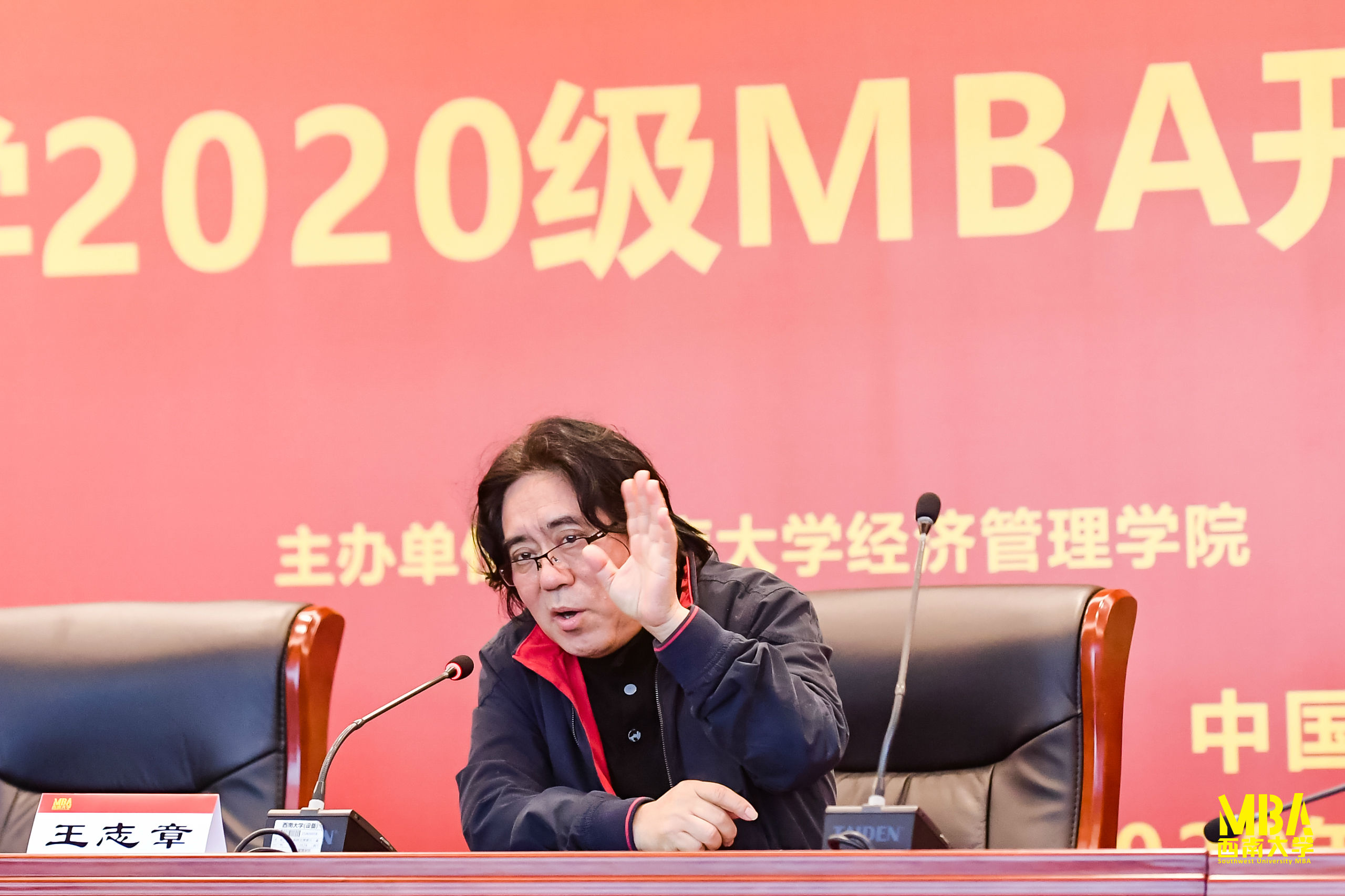 王萍主任代表全国MBA教育指导委员会秘书处致辞。王主任回顾了中国MBA办学历程,肯定了近年来bv伟德国际1946MBA教育在项目定位以及办学特色等方面取得的突出成绩,也对2020级MBA新同学们提出了宝贵建议,她勉励同学们要胸怀历史使命感,知行合一,除了课堂的学习,也应该在MBA的学习生涯中广交朋友、增进友谊,丰富自己MBA学习的生活和收获。