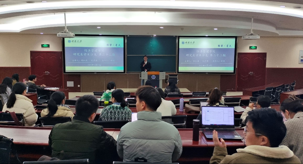 2021年11月19日10:00,伟德国际VICTOR1946第二十二期“经管·星火”研究生学术沙龙——硕士生专场在公司B201教室举行。本次沙龙由2020级会计学硕士研究生胡红燕、2020级金融学硕士研究生龙星燎担任主讲人,公司游鸿老师担任点评嘉宾,公司党委副书记田丽、2021级研究生辅导员任娟出席,公司2020级硕士研究生参加此次学术沙龙。本次活动由2020级产业经济学专业硕士研究生韩威鹏主持。