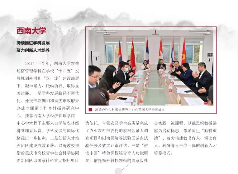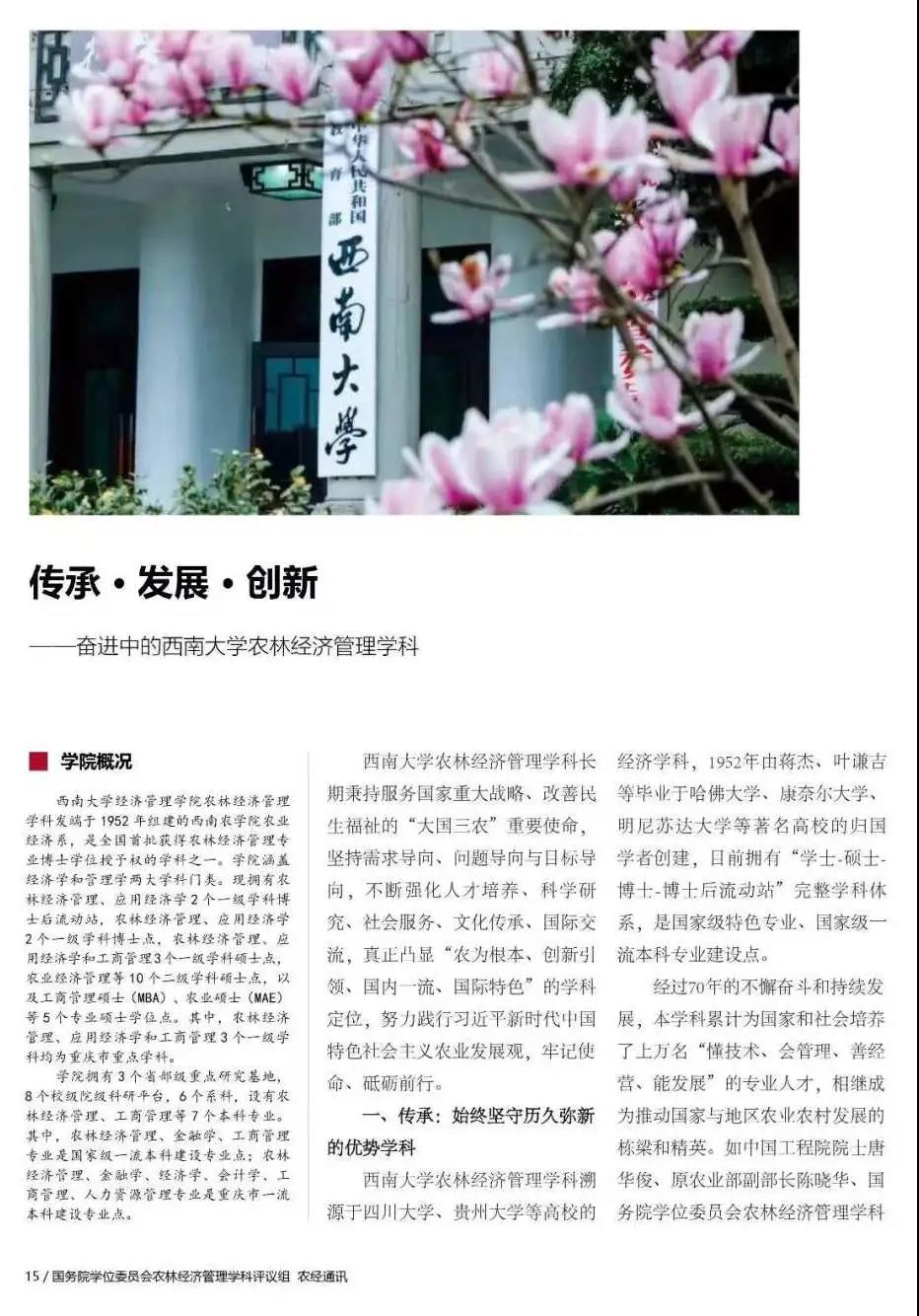 近日,国务院学位委员会农林经济管理学科评议组工作简报《农经通讯》第2期,以“持续推进学科发展,聚力创新人才培养”为题,从“学科发展路径不断优化、创新人才培养团队建设成效显著、‘耕读中国’特色课程综合育人功能明显”三个方面,介绍公司农林经济管理学科动态。