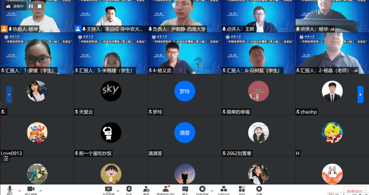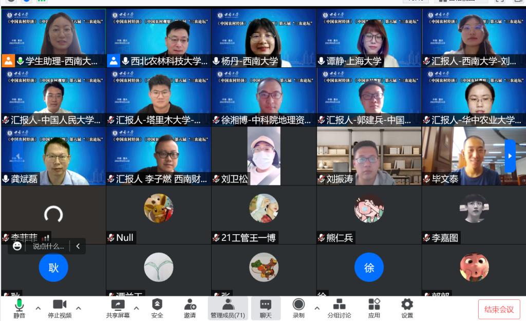 下午的分论坛分为10个线上平行分论坛,每个分论坛由6位作者分别汇报论文,三位专家进行点评。第一分论坛围绕“农村金融改革与服务创新”主题展开讨论,由南京农业大学金融公司副经理张龙耀教授主持。论文作者田锦萱、刘渊博、王安邦、魏腾达、燕菲儿、何茜围绕该主题分别作了报告,华中农业大学伟德国际VICTOR1946刘西川教授、中国农业大学伟德国际VICTOR1946何婧副教授对以上报告做了精彩点评。