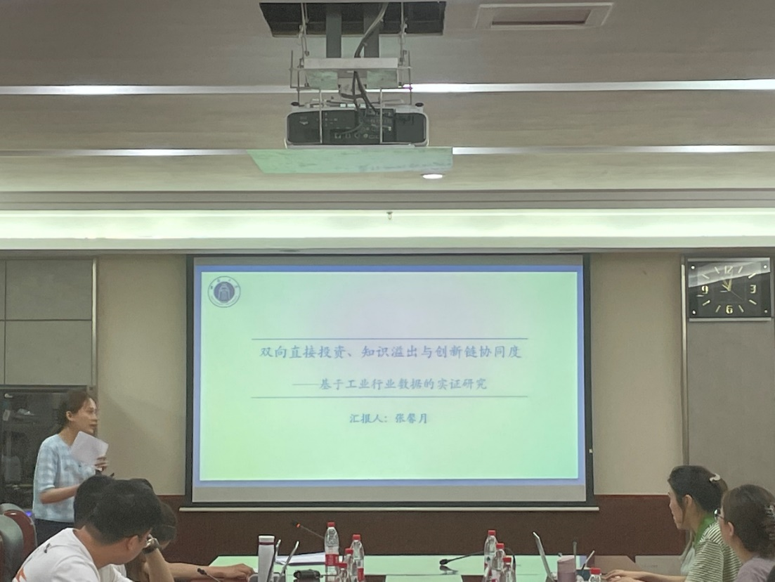 张馨月分享论文《双向直接投资、知识溢出与创新链协同度——基于工业行业数据的实证研究》的主要内容。文章基于中国价值链“低端锁定”、科技与经济“两张皮”现象等背景,从相关理论与假说入手,通过对工业行业的数据测度与实证设计,研究双向直接投资、知识溢出与创新协同度之间的关系。