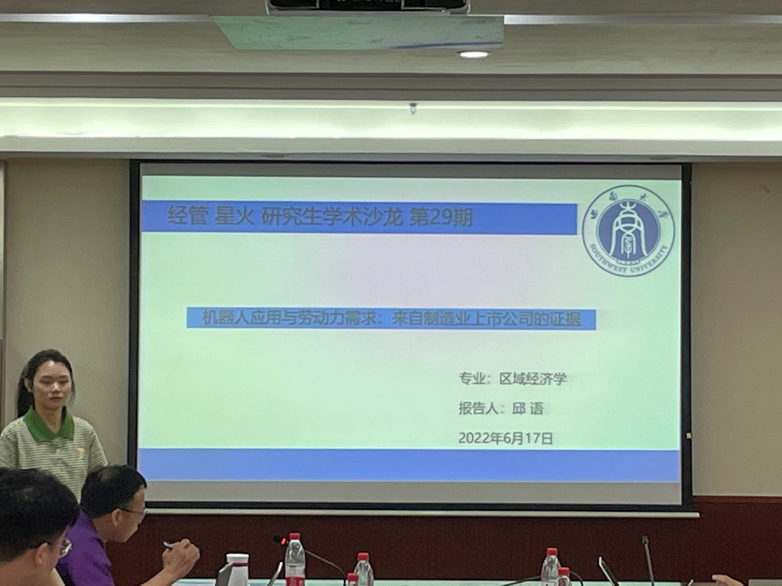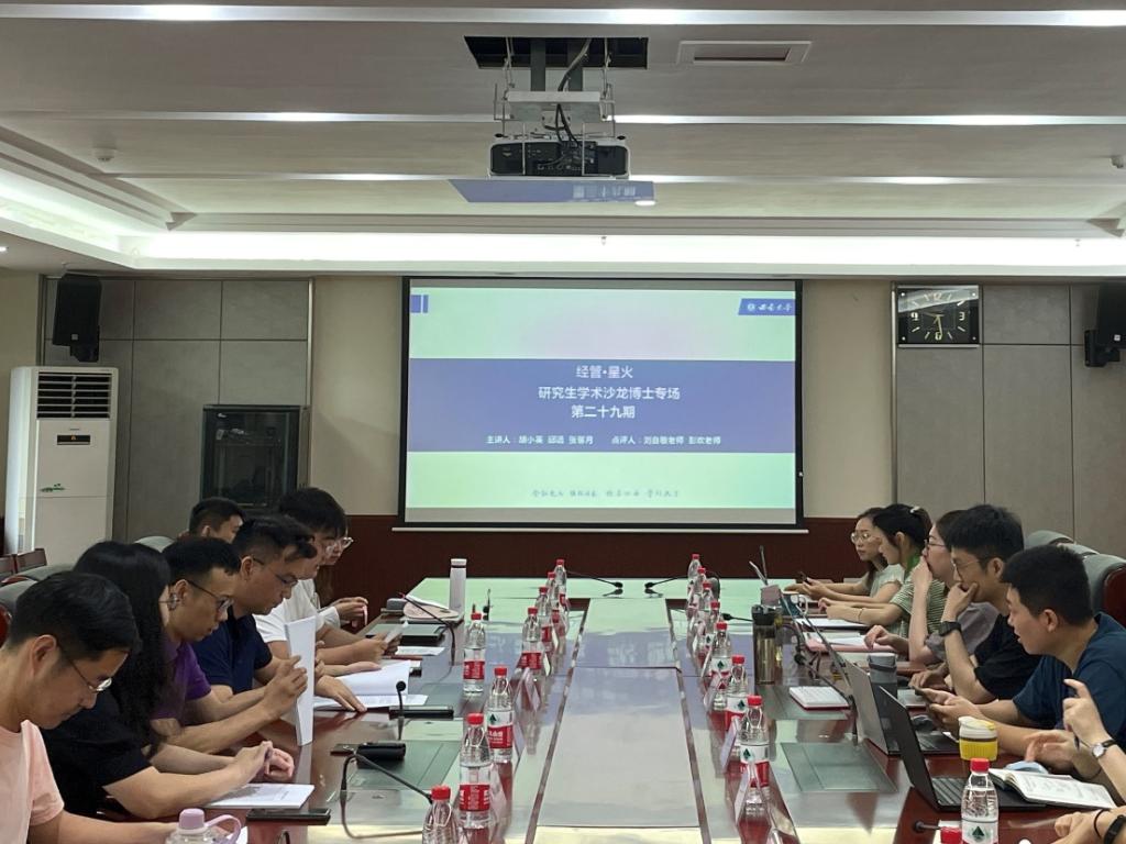 2022年6月17日9:30,伟德国际VICTOR1946第二十九期“经管·星火”博士研究生学术沙龙在公司A204举行。本次沙龙由2020级金融学专业博士研究生胡小英、2020级区域经济学专业博士研究生邱语、2020级金融学专业博士研究生张馨月担任主讲人,公司刘自敏、彭欢老师担任点评嘉宾,公司2020级、2021级博士研究生参加此次学术沙龙。沙龙由2021级博士生肖沁霖主持。