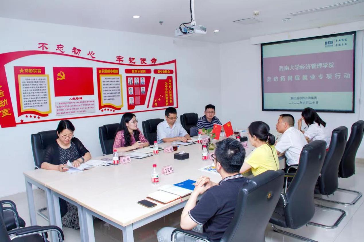 在重庆道尔敦咨询集团(重庆道尔敦建设项目管理有限公司、重庆道尔敦会计师事务所有限公司、重庆道尔敦资产评估土地房地产估计有限公司),集团董事长段秀莉介绍了公司的基本情况、发展历程和未来发展战略,公司领导分别就公司的学科专业、团队队伍和人才培养等情况进行了介绍。校企双方就项目合作、人才培养、员工就业、党建结对共建等方面达成共识,一致表示将尽快完善合作机制,建立实习实践基地。