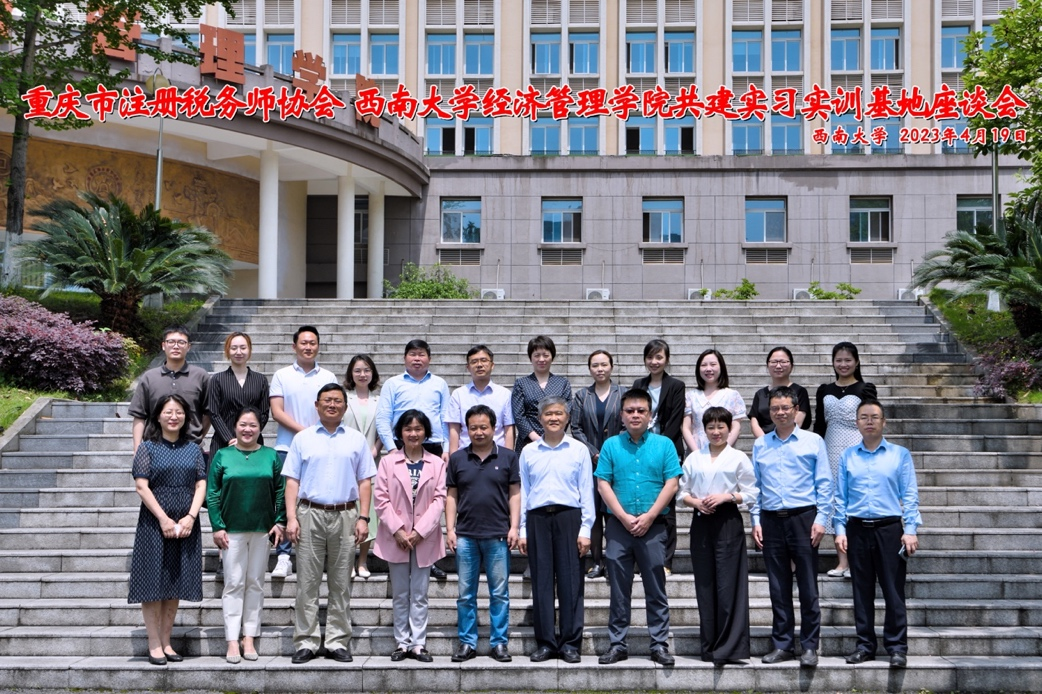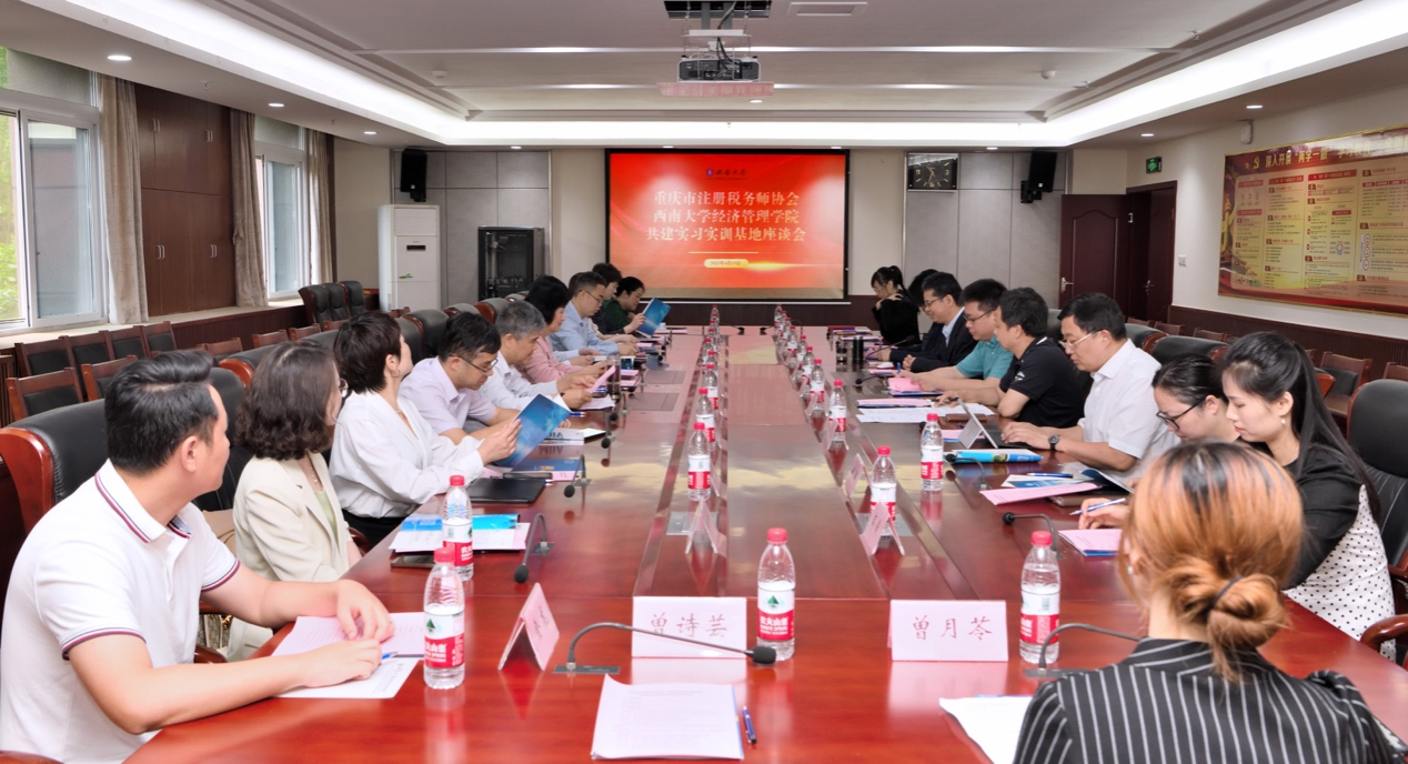 bv伟德国际1946经济管理公司党委书记卢跃进、党委副书记、纪委书记张其光、党委副书记李玉胜、副经理黄庆华、会计系主任毕茜、辅导员代表,重庆市注册税务师行业党委副书记兼市注册税务师协会会长向垣树、党委副书记兼市注册税务师协会副会长白渝、重庆市注册税务师协会副秘书长杨杰、教育培训部副主任彭靖淋,以及多名税务师事务所负责人代表出席了当天的共建实习实训基地座谈会。