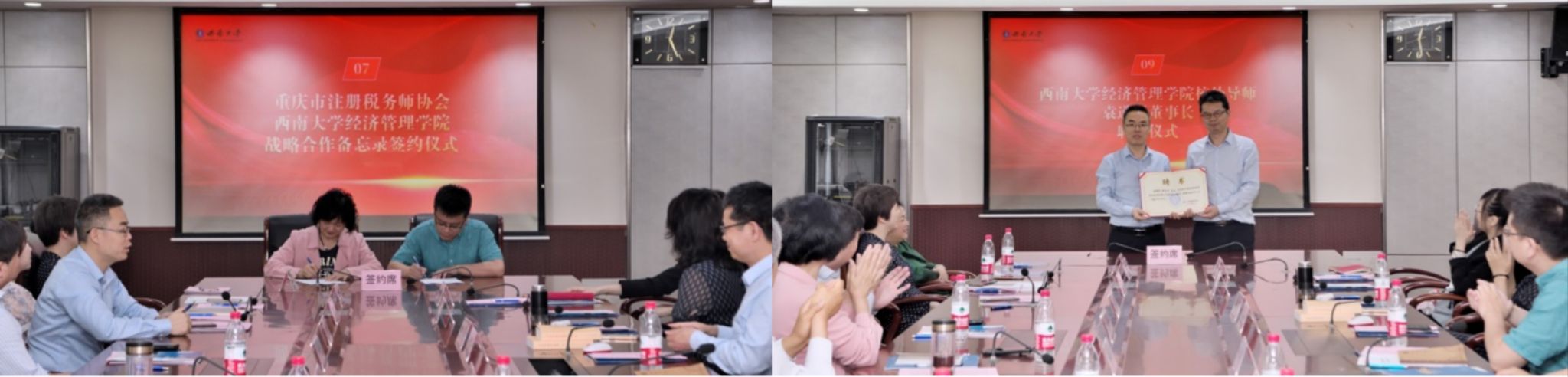 会上,公司党委书记卢跃进对各位参会人员表示了热烈的欢迎,并简明扼要地介绍了伟德国际VICTOR1946的历史渊源和发展情况。他表示,希望用人单位可以给予公司学子更多的锻炼机会,对公司工作提出有益的建议与指导,以便公司在人才培养方面更准确、更有效、更有力。重庆市注册税务师协会会长向垣树从税务师事务所行业的发展情况和当前的就业形势两个方面分析了行业的发展前景以及目前人才与市场不匹配的就业痛点,并提出在签署战略合作备忘录的推动下,重庆市税务师事务所行业与伟德国际VICTOR1946实现互利共赢的美好设想。随后,公司相关负责人依次介绍了公司本科和研究生人才培养情况、会计学学科专业建设情况,部分税务师事务所负责人代表围绕推动产教融合及院企合作新方向等方面畅所欲言,并对公司、注册税务师协会和事务所三者在人才培养方面的深化合作提出了众多精彩的宝贵意见。在座谈会的尾声,公司隆重举行了与重庆市注册税务师协会的战略合作备忘录签约仪式,并进行了“实习实训基地”的授牌,为重庆市注册税务师协会副会长兼中税网天运(重庆)税务师事务所有限公司董事长袁道平颁发了校外导师聘书。