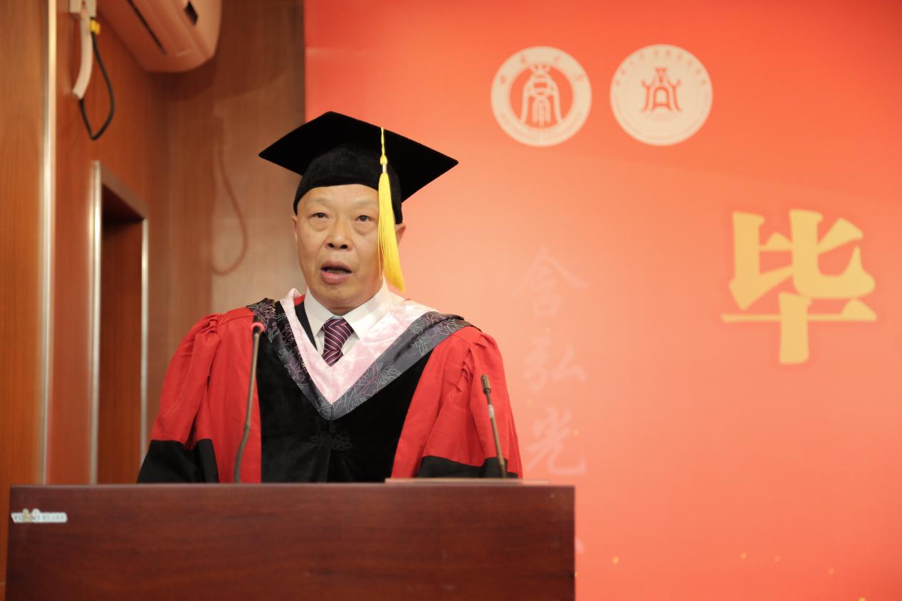 王小华教授作为教师代表发言,他以信仰、格局、机遇、实干为关键词,表达了对毕业生的期盼。寄语毕业生在人际交往中“和而不同”,在为人处世上“周而不比”,在工作过程中“求同存异”,在科学研究中“求异存同”。勉励毕业生们认清身上肩负的责任,珍惜奋斗的新时代、工作的好平台,储备足够的能力本领,为青春赋能增彩。