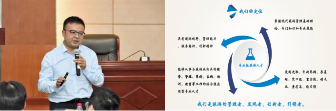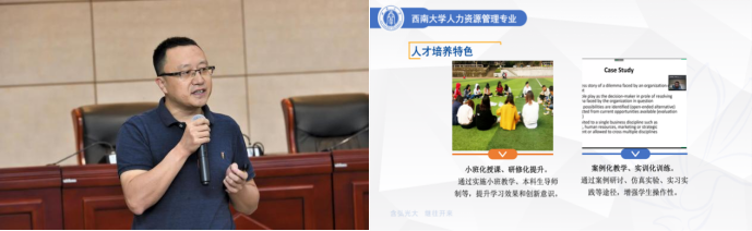 人力资源管理专业教师代表王双龙老师从bv伟德国际1946人力资源管理的专业简介、培养目标、团队力量和教学团队建设等方面展开了讲解。