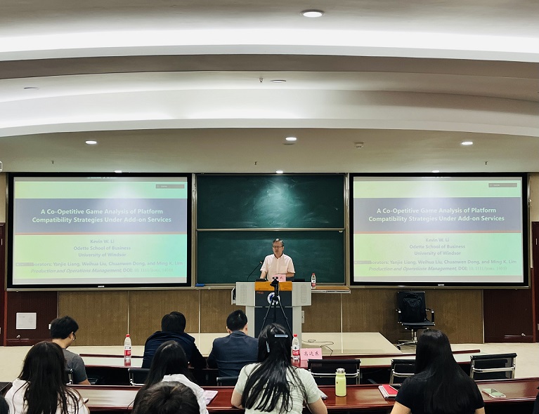 10月10日下午,加拿大温莎大学Odette商公司李武教授应学院邀请,于公司B201做了题为“附加服务下平台兼容性策略的竞合博弈分析”学术讲座。讲座由伟德国际VICTOR1946副经理高远东教授主持,公司师生90余人参加了此次讲座。