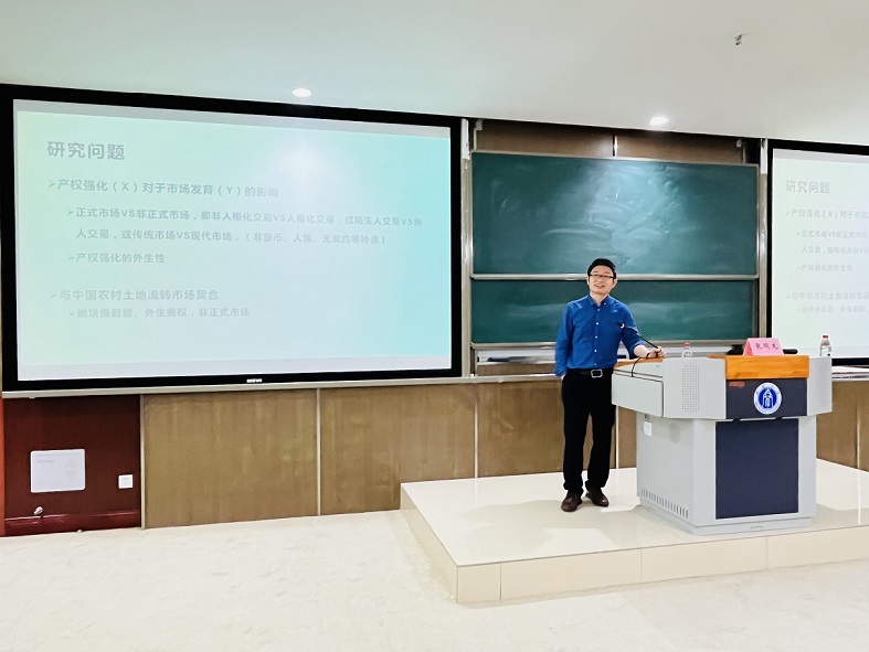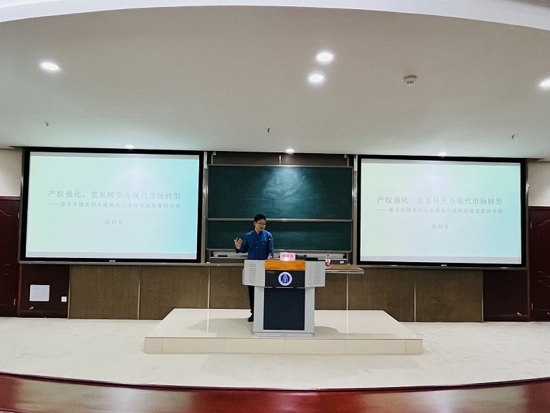 交流互动环节,与会师生就“研究生如何进行理论提升及提高实证分析能力”“怎样保持理论模型与实证分析之间的一致性”“产权强度的渐进性”及“土地确权的生态效应”等问题与张同龙教授展开讨论。张同龙一一进行了细致地解答,并对现阶段“研究生关注实证结果而不考虑理论基础以及模型的正确性”等现象提出了建议。师生们纷纷表示收获颇丰,既对产权强度与市场交易模式有了新的认识,又明晰了从理论出发并进行理论验证的过程,对于研究中国农村土地流转具有借鉴意义。