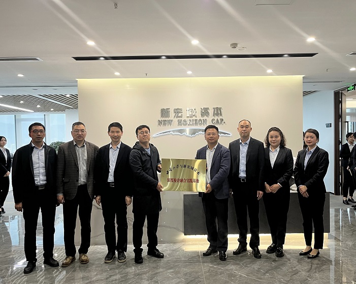 周丹董事长和左俊成副总裁陪同高远东一行参观了公司办公场所,展示了公司文化建设情况。随后,双方举行了深度校企融合协议签订仪式。高远东为重庆新宏域资本管理有限公司授予深度校企融合实践基地铭牌,双方主要人员合影纪念。